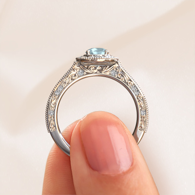Nous avons donné le nom Alice RND à cette bague de fiançailles. Cette bague forgée en or est sertie d’un aigue-marine de 5 mm. Cette bague est une large bague vintage forgée en platine unique qui fera certainement briller l’amour de votre vie ! Et c'est exactement ce que nous avons comme objectif. Un beau aigue-marine est serti dans cette bague de fiançailles vintage. Vous pouvez, bien entendu, utiliser chaque pierre précieuses que nous proposons sur notre site La pierre précieuse sera sélectionnée avec soin, car nous pensons que seule la plus belle des pierres précieuses peut briller sur votre bague de fiançailles millegrain, qu’en dites-vous ? Notre orfèvre fabrique votre bague de fiançailles dans notre propre atelier et place le aigue-marine dans l'anneau de la bague avec une précision extrême. Donc, elle est travaillée et polie jusqu'à ce que le résultat désiré soit visible : la bague de fiançailles parfaite pour l'amour de votre vie ! Ce bijou est fabriquées avec passion et amour par l'un de nos maîtres orfèvres.Vous avez peut-être remarqué que nos prix sont en moyenne inférieurs de 30% à ceux d'un autre bijoutier. Et ce alors que la qualité de nos bijoux est même plus élevée dans la plupart des cas ! En effet, nos orfèvres fabriquent votre bague de fiançailles directement dans notre propre atelier. Cela signifie que nous n'avons pas à inclure des frais de stocks coûteux et que nous pouvons travailler n'importe quel détail directement sur votre bague de fiançailles.Notre équipe ajoute quotidiennement de nouveaux modèles à notre collection en ligne. Nos designers et orfèvres travaillent ensemble pour créer le meilleur design. Nous nous efforçons d'offrir une collection diversifiée de bijoux. Peut-être avez-vous déjà en tête un bijou en particulier ? Un bijou que vous avez trouvé quelque part. Veuillez nous contacter pour une consultation gratuite. Nous vous ferons une offre, basée sur un rapport qualité / prix juste, qui vous déconcertera.Pour vous faciliter la tâche, vous pouvez facilement nous retourner tout bijou commandé dans les 30 jours suivant la livraison.