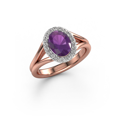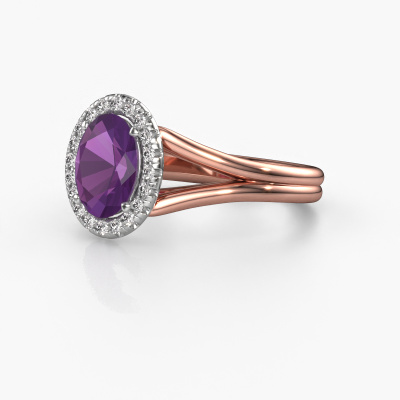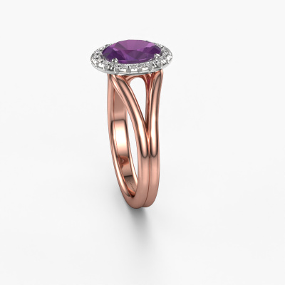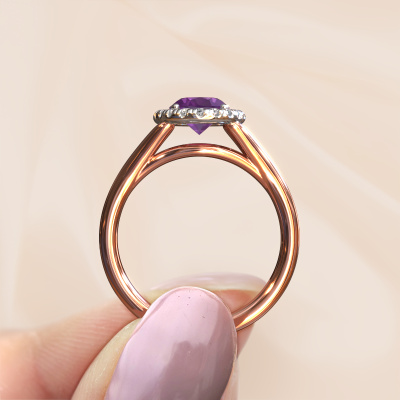 Cette bague de fiançailles porte le nom Verla ovl 1. Cette bague de fiançailles bandes séparées est forgée en or 14 Carat et est sertie d’un améthyste de 8x6 mm. Cette bague de fiançailles halo et forgée en or rose unique est un pur travail d’art ! Tous les petits détails ont été fabriqués avec beaucoup de patience et de passion par notre orfèvre. Ce métier nécessite un œil expert et une main habile pour assembler cette bague de fiançailles avec la plus grande précision. Et ce travail est précisément ce qui enthousiasme nos orfèvres ! Les plus beaux améthystes sont sertis de manière large, de telle sorte qu'ils puissent rendre un effet encore meilleurs. Cela donne donc une allure supplémentaire à la bague de fiançailles. La bague de fiançailles est unique en raison de sa pierre précieuse naturelle, que nous avons spécialement sélectionnée pour cette bague. De plus, vous pouvez choisir vous-même la composition du métal précieux de votre bague. Vous aurez donc créé une bague de fiançailles unique pour la femmes la plus unique de votre vie ! Ce bijou est fabriquées avec passion et amour par l'un de nos maîtres orfèvres.En combinant les dernières techniques modernes, associées à une fabrication ancienne, nous sommes en mesure de fabriquer nos bagues de fiançailles dans notre propre studio. Chaque bijou est fabriqué sur commande. Ceci est avantageux car nous sommes en mesure de vous proposer un prix que vous ne trouverez nulle part ailleurs.Avez-vous déjà des bague de fiançailles spécifiques en tête ? Une bague de fiançailles que vous avez vu quelque part. N'hésitez pas à nous faire part de vos souhaits et nous transformerons votre design en des bague de fiançailles uniques. Vous êtes en mesure de suivre l'évolution de la conception de vos bague de fiançailles car nous utilisons des dessins en 3D. Cela vous donnera un aperçu réaliste de votre design. Nous vous enverrons volontiers une offre sans engagement basée sur un rapport qualité / prix juste. Elle va vous étonner.Pour vous faciliter la tâche, vous pouvez facilement nous retourner tout bijou commandé dans les 30 jours suivant la livraison.