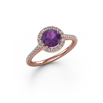 La bague de fiançailles mentionnée ci-dessus est nommée Seline rnd 2. Nous appelons ce type de bague de fiançailles une bague Halo. La bague de fiançailles est forgée en or 14 Carat et comporte un améthyste ronds de la de 6.5 mm et autour duquel sont sertis de petits diamants synthétiques. La largeur de cette bague de fiançailles halo forgée en or rose exclusives vient des plus petites pierres précieuses qui sont serties autour du large améthyste central. C’est également ce à partir de quoi cette belle bague de fiançailles tire son nom : halo signifie halo et c’est aussi l’effet que rendent les pierres précieuses plus petites. Cependant, ces pierres précieuses plus petites doivent toutes être serties de la même manière, afin que la lumière ne soit pas seulement introduite dans le améthyste et qu’un véritable halo de lumière soit créé. Et c'est ce que font nos maîtres orfèvres. Avec la plus grande précision, chaque améthyste soigneusement sélectionné est placé à la main dans la bague de fiançailles. Encore et encore, la bague de fiançailles est maintenue à la lumière pour voir si l'effet spécial est toujours visible. Le résultat est une bague de fiançailles unique, où le améthyste choisi devient littéralement le centre brillants. Vous pouvez imaginer que cette bague de fiançailles est vraiment une bague de fiançailles significative à offrir à votre amour de la vie ! Le jour où vous montrez qu’elle est votre centre brillants ! Nos orfèvres ne fabriqueront votre bague de fiançailles qu'une fois que vous l'aurez commandée. Nous ne faisons pas de stock. L'avantage de cela est que nous n'avons pas à inclure les frais de stockage dans nos prix, et nous pouvons donc vous offrir des bijoux à un prix très bas.Notre équipe ajoute quotidiennement de nouveaux modèles à notre collection en ligne. Nos designers et orfèvres travaillent ensemble pour créer le meilleur design. Nous nous efforçons d'offrir une collection diversifiée de bijoux. Peut-être avez-vous déjà en tête un bijou en particulier ? Un bijou que vous avez trouvé quelque part. Veuillez nous contacter pour une consultation gratuite. Nous vous ferons une offre, basée sur un rapport qualité / prix juste, qui vous déconcertera.Pour vous faciliter la tâche, vous pouvez facilement nous retourner tout bijou commandé dans les 30 jours suivant la livraison.