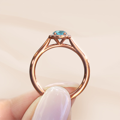 La bague de fiançailles mentionnée ci-dessus est nommée Seline rnd 1. Nous appelons ce type de bague de fiançailles une bague Halo. La bague de fiançailles est forgée en or 14 Carat et comporte un topaze bleue ronds de la de 5 mm et autour duquel sont sertis de petits diamants. La largeur de cette bague de fiançailles halo forgée en or rose classiques vient des plus petites pierres précieuses qui sont serties autour du large topaze bleue central. C’est également ce à partir de quoi cette belle bague de fiançailles tire son nom : halo signifie halo et c’est aussi l’effet que rendent les pierres précieuses plus petites. Cependant, ces pierres précieuses plus petites doivent toutes être serties de la même manière, afin que la lumière ne soit pas seulement introduite dans le topaze bleue et qu’un véritable halo de lumière soit créé. Et c'est ce que font nos maîtres orfèvres. Avec la plus grande précision, chaque topaze bleue soigneusement sélectionné est placé à la main dans la bague de fiançailles. Encore et encore, la bague de fiançailles est maintenue à la lumière pour voir si l'effet spécial est toujours visible. Le résultat est une bague de fiançailles unique, où le topaze bleue choisi devient littéralement le centre brillants. Vous pouvez imaginer que cette bague de fiançailles est vraiment une bague de fiançailles significative à offrir à votre amour de la vie ! Le jour où vous montrez qu’elle est votre centre brillants ! Qu'y a-t-il dorénavant de plus beau qu'une bague de fiançailles classiques conçue par vous-même et fabriquée à la main par nous. Vous pouvez personnaliser chaque modèle avec les différents métaux précieux et pierres précieuses. De cette façon, vous pourrez créer une bague de fiançailles unique. Cette bague peut être mise en place de plusieurs façons. Bien sûr, vous pouvez toujours nous contacter et nous serons heureux de vous aider à composer votre bague de fiançailles classiques Seline rnd 1. Vous aimez le design, mais vous souhaitez tout de même quelque chose qui vous convienne plus, ou bien vous souhaitez une pierre précieuse dans les bijoux que vous ne pouvez pas choisir sur notre site, contactez-nous et nous vous aiderons.Notre équipe ajoute quotidiennement de nouveaux modèles à notre collection en ligne. Nos designers et orfèvres travaillent ensemble pour créer le meilleur design. Nous nous efforçons d'offrir une collection diversifiée de bijoux. Peut-être avez-vous déjà en tête un bijou en particulier ? Un bijou que vous avez trouvé quelque part. Veuillez nous contacter pour une consultation gratuite. Nous vous ferons une offre, basée sur un rapport qualité / prix juste, qui vous déconcertera.Pour vous faciliter la tâche, vous pouvez facilement nous retourner tout bijou commandé dans les 30 jours suivant la livraison.