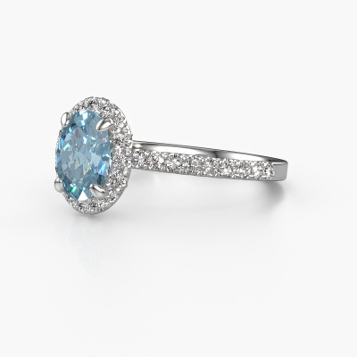 La bague de fiançailles mentionnée ci-dessus est nommée Miranda ovl. Nous appelons ce type de bague de fiançailles une bague Halo. La bague de fiançailles est forgée en or et comporte un diamant synthétique bleu ovale de la de 8x6 mm et autour duquel sont sertis de petits diamants synthétiques. La largeur de cette bague de fiançailles halo forgée en platine exclusives vient des plus petites pierres précieuses qui sont serties autour du large diamant synthétique bleu central. C’est également ce à partir de quoi cette belle bague de fiançailles tire son nom : halo signifie halo et c’est aussi l’effet que rendent les pierres précieuses plus petites. Cependant, ces pierres précieuses plus petites doivent toutes être serties de la même manière, afin que la lumière ne soit pas seulement introduite dans le diamant synthétique bleu et qu’un véritable halo de lumière soit créé. Et c'est ce que font nos maîtres orfèvres. Avec la plus grande précision, chaque diamant synthétique bleu soigneusement sélectionné est placé à la main dans la bague de fiançailles. Encore et encore, la bague de fiançailles est maintenue à la lumière pour voir si l'effet spécial est toujours visible. Le résultat est une bague de fiançailles unique, où le diamant synthétique bleu choisi devient littéralement le centre brillants. Vous pouvez imaginer que cette bague de fiançailles est vraiment une bague de fiançailles significative à offrir à votre amour de la vie ! Le jour où vous montrez qu’elle est votre centre brillants ! En combinant les dernières techniques modernes, associées à une fabrication ancienne, nous sommes en mesure de fabriquer nos bagues de fiançailles dans notre propre studio. Chaque bijou est fabriqué sur commande. Ceci est avantageux car nous sommes en mesure de vous proposer un prix que vous ne trouverez nulle part ailleurs.Notre équipe de designers talentueux et passionnés ajoute chaque jour de nouveaux modèles bague de fiançailles à notre collection en ligne. Notre objectif est de pouvoir vous offrir une grande variété de bijoux. N'hésitez pas à demander un devis si vous avez des souhaits spécifiques pour votre bague de fiançailles. Nous garantissons de vous faire une offre que vous ne pourrez pas refuser.Pour vous faciliter la tâche, vous pouvez facilement nous retourner tout bijou commandé dans les 30 jours suivant la livraison.
