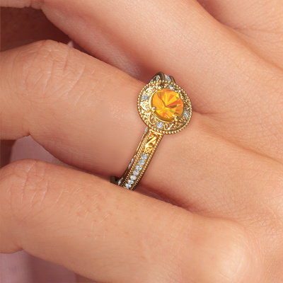 Nous avons donné le nom Alice RND à cette bague de fiançailles. Cette bague forgée en or 14 Carat est sertie d’un citrine de 5 mm. Cette bague est une large bague vintage forgée en or jaune unique qui fera certainement briller l’amour de votre vie ! Et c'est exactement ce que nous avons comme objectif. Un beau citrine est serti dans cette bague de fiançailles vintage. Vous pouvez, bien entendu, utiliser chaque pierre précieuses que nous proposons sur notre site La pierre précieuse sera sélectionnée avec soin, car nous pensons que seule la plus belle des pierres précieuses peut briller sur votre bague de fiançailles millegrain, qu’en dites-vous ? Notre orfèvre fabrique votre bague de fiançailles dans notre propre atelier et place le citrine dans l'anneau de la bague avec une précision extrême. Donc, elle est travaillée et polie jusqu'à ce que le résultat désiré soit visible : la bague de fiançailles parfaite pour l'amour de votre vie ! Ce bijou est fabriquées avec passion et amour par l'un de nos maîtres orfèvres.Vous avez peut-être remarqué que nos prix sont en moyenne inférieurs de 30% à ceux d'un autre bijoutier. Et ce alors que la qualité de nos bijoux est même plus élevée dans la plupart des cas ! En effet, nos orfèvres fabriquent votre bague de fiançailles directement dans notre propre atelier. Cela signifie que nous n'avons pas à inclure des frais de stocks coûteux et que nous pouvons travailler n'importe quel détail directement sur votre bague de fiançailles.Notre équipe ajoute quotidiennement de nouveaux modèles à notre collection en ligne. Nos designers et orfèvres travaillent ensemble pour créer le meilleur design. Nous nous efforçons d'offrir une collection diversifiée de bijoux. Peut-être avez-vous déjà en tête un bijou en particulier ? Un bijou que vous avez trouvé quelque part. Veuillez nous contacter pour une consultation gratuite. Nous vous ferons une offre, basée sur un rapport qualité / prix juste, qui vous déconcertera.Pour vous faciliter la tâche, vous pouvez facilement nous retourner tout bijou commandé dans les 30 jours suivant la livraison.