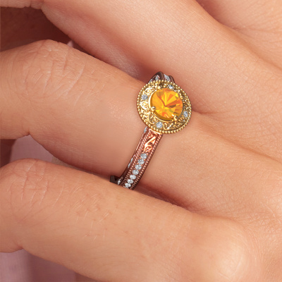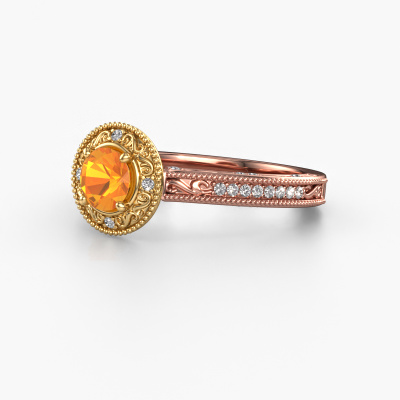 Nous avons donné le nom Alice RND à cette bague de fiançailles. Cette bague forgée en or 14 Carat est sertie d’un citrine de 5 mm. Cette bague est une large bague vintage forgée en or rose unique qui fera certainement briller l’amour de votre vie ! Et c'est exactement ce que nous avons comme objectif. Un beau citrine est serti dans cette bague de fiançailles vintage. Vous pouvez, bien entendu, utiliser chaque pierre précieuses que nous proposons sur notre site La pierre précieuse sera sélectionnée avec soin, car nous pensons que seule la plus belle des pierres précieuses peut briller sur votre bague de fiançailles millegrain, qu’en dites-vous ? Notre orfèvre fabrique votre bague de fiançailles dans notre propre atelier et place le citrine dans l'anneau de la bague avec une précision extrême. Donc, elle est travaillée et polie jusqu'à ce que le résultat désiré soit visible : la bague de fiançailles parfaite pour l'amour de votre vie ! Ce bijou est fabriquées avec passion et amour par l'un de nos maîtres orfèvres.Vous avez peut-être remarqué que nos prix sont en moyenne inférieurs de 30% à ceux d'un autre bijoutier. Et ce alors que la qualité de nos bijoux est même plus élevée dans la plupart des cas ! En effet, nos orfèvres fabriquent votre bague de fiançailles directement dans notre propre atelier. Cela signifie que nous n'avons pas à inclure des frais de stocks coûteux et que nous pouvons travailler n'importe quel détail directement sur votre bague de fiançailles.Notre équipe ajoute quotidiennement de nouveaux modèles à notre collection en ligne. Nos designers et orfèvres travaillent ensemble pour créer le meilleur design. Nous nous efforçons d'offrir une collection diversifiée de bijoux. Peut-être avez-vous déjà en tête un bijou en particulier ? Un bijou que vous avez trouvé quelque part. Veuillez nous contacter pour une consultation gratuite. Nous vous ferons une offre, basée sur un rapport qualité / prix juste, qui vous déconcertera.Pour vous faciliter la tâche, vous pouvez facilement nous retourner tout bijou commandé dans les 30 jours suivant la livraison.