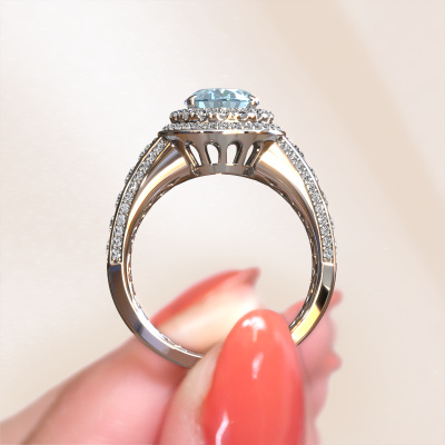 Cette bague de fiançailles porte le nom Nancie. Cette bague de fiançailles gracieuses est forgée en or et est sertie d’un diamant synthétique bleu de 9x7 mm. Cette bague de fiançailles halo et forgée en platine unique est un pur travail d’art ! Tous les petits détails ont été fabriqués avec beaucoup de patience et de passion par notre orfèvre. Ce métier nécessite un œil expert et une main habile pour assembler cette bague de fiançailles avec la plus grande précision. Et ce travail est précisément ce qui enthousiasme nos orfèvres ! Les plus beaux diamant synthétique bleu sont sertis de manière large, de telle sorte qu'ils puissent rendre un effet encore meilleurs. Cela donne donc une allure supplémentaire à la bague de fiançailles. La bague de fiançailles est unique en raison de sa pierre précieuse naturelle, que nous avons spécialement sélectionnée pour cette bague. De plus, vous pouvez choisir vous-même la composition du métal précieux de votre bague. Vous aurez donc créé une bague de fiançailles unique pour la femmes la plus unique de votre vie ! Ce bijou est faite pour briller sur votre doigt, chaque bijou est fabriqué à la main par nos orfèvres.Vous avez peut-être remarqué que nos prix sont en moyenne inférieurs de 30% à ceux d'un autre bijoutier. Et ce alors que la qualité de nos bijoux est même plus élevée dans la plupart des cas ! En effet, nos orfèvres fabriquent votre bague de fiançailles directement dans notre propre atelier. Cela signifie que nous n'avons pas à inclure des frais de stocks coûteux et que nous pouvons travailler n'importe quel détail directement sur votre bague de fiançailles.Notre équipe de designers talentueux et passionnés ajoute chaque jour de nouveaux modèles bague de fiançailles à notre collection en ligne. Notre objectif est de pouvoir vous offrir une grande variété de bijoux. N'hésitez pas à demander un devis si vous avez des souhaits spécifiques pour votre bague de fiançailles. Nous garantissons de vous faire une offre que vous ne pourrez pas refuser.Pour vous faciliter la tâche, vous pouvez facilement nous retourner tout bijou commandé dans les 30 jours suivant la livraison.