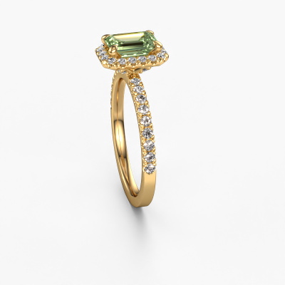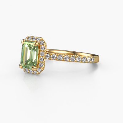 La bague de fiançailles mentionnée ci-dessus est nommée Miranda eme. Nous appelons ce type de bague de fiançailles une bague Halo. La bague de fiançailles est forgée en or 14 Carat et comporte un diamants synthétiques vert taille émeraude de la de 7x5 mm et autour duquel sont sertis de petits diamants. La largeur de cette bague de fiançailles halo forgée en or jaune classiques vient des plus petites pierres précieuses qui sont serties autour du large diamants synthétiques vert central. C’est également ce à partir de quoi cette belle bague de fiançailles tire son nom : halo signifie halo et c’est aussi l’effet que rendent les pierres précieuses plus petites. Cependant, ces pierres précieuses plus petites doivent toutes être serties de la même manière, afin que la lumière ne soit pas seulement introduite dans le diamants synthétiques vert et qu’un véritable halo de lumière soit créé. Et c'est ce que font nos maîtres orfèvres. Avec la plus grande précision, chaque diamants synthétiques vert soigneusement sélectionné est placé à la main dans la bague de fiançailles. Encore et encore, la bague de fiançailles est maintenue à la lumière pour voir si l'effet spécial est toujours visible. Le résultat est une bague de fiançailles unique, où le diamants synthétiques vert choisi devient littéralement le centre brillants. Vous pouvez imaginer que cette bague de fiançailles est vraiment une bague de fiançailles significative à offrir à votre amour de la vie ! Le jour où vous montrez qu’elle est votre centre brillants ! En combinant les dernières techniques modernes, associées à une fabrication ancienne, nous sommes en mesure de fabriquer nos bagues de fiançailles dans notre propre studio. Chaque bijou est fabriqué sur commande. Ceci est avantageux car nous sommes en mesure de vous proposer un prix que vous ne trouverez nulle part ailleurs.Notre équipe de designers talentueux et passionnés ajoute chaque jour de nouveaux modèles bague de fiançailles à notre collection en ligne. Notre objectif est de pouvoir vous offrir une grande variété de bijoux. N'hésitez pas à demander un devis si vous avez des souhaits spécifiques pour votre bague de fiançailles. Nous garantissons de vous faire une offre que vous ne pourrez pas refuser.Pour vous faciliter la tâche, vous pouvez facilement nous retourner tout bijou commandé dans les 30 jours suivant la livraison.