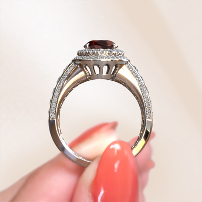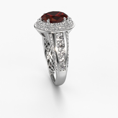 Cette bague de fiançailles porte le nom Nancie. Cette bague de fiançailles gracieuses est forgée en or et est sertie d’un grenat de 9x7 mm. Cette bague de fiançailles halo et forgée en platine unique est un pur travail d’art ! Tous les petits détails ont été fabriqués avec beaucoup de patience et de passion par notre orfèvre. Ce métier nécessite un œil expert et une main habile pour assembler cette bague de fiançailles avec la plus grande précision. Et ce travail est précisément ce qui enthousiasme nos orfèvres ! Les plus beaux grenats sont sertis de manière large, de telle sorte qu'ils puissent rendre un effet encore meilleurs. Cela donne donc une allure supplémentaire à la bague de fiançailles. La bague de fiançailles est unique en raison de sa pierre précieuse naturelle, que nous avons spécialement sélectionnée pour cette bague. De plus, vous pouvez choisir vous-même la composition du métal précieux de votre bague. Vous aurez donc créé une bague de fiançailles unique pour la femmes la plus unique de votre vie ! Ce bijou est faite pour briller sur votre doigt, chaque bijou est fabriqué à la main par nos orfèvres.Vous avez peut-être remarqué que nos prix sont en moyenne inférieurs de 30% à ceux d'un autre bijoutier. Et ce alors que la qualité de nos bijoux est même plus élevée dans la plupart des cas ! En effet, nos orfèvres fabriquent votre bague de fiançailles directement dans notre propre atelier. Cela signifie que nous n'avons pas à inclure des frais de stocks coûteux et que nous pouvons travailler n'importe quel détail directement sur votre bague de fiançailles.Notre équipe de designers talentueux et passionnés ajoute chaque jour de nouveaux modèles bague de fiançailles à notre collection en ligne. Notre objectif est de pouvoir vous offrir une grande variété de bijoux. N'hésitez pas à demander un devis si vous avez des souhaits spécifiques pour votre bague de fiançailles. Nous garantissons de vous faire une offre que vous ne pourrez pas refuser.Pour vous faciliter la tâche, vous pouvez facilement nous retourner tout bijou commandé dans les 30 jours suivant la livraison.