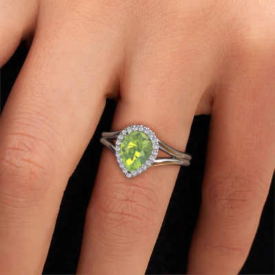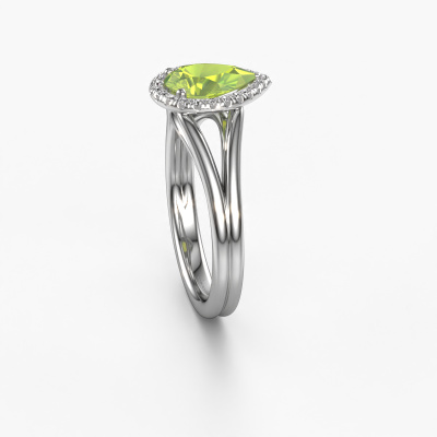 Cette bague de fiançailles porte le nom Verla pear 1. Cette bague de fiançailles élégants est forgée en or et est sertie d’un péridot de 8x6 mm. Cette bague de fiançailles halo et forgée en platine unique est un pur travail d’art ! Tous les petits détails ont été fabriqués avec beaucoup de patience et de passion par notre orfèvre. Ce métier nécessite un œil expert et une main habile pour assembler cette bague de fiançailles avec la plus grande précision. Et ce travail est précisément ce qui enthousiasme nos orfèvres ! Les plus beaux péridots sont sertis de manière large, de telle sorte qu'ils puissent rendre un effet encore meilleurs. Cela donne donc une allure supplémentaire à la bague de fiançailles. La bague de fiançailles est unique en raison de sa pierre précieuse naturelle, que nous avons spécialement sélectionnée pour cette bague. De plus, vous pouvez choisir vous-même la composition du métal précieux de votre bague. Vous aurez donc créé une bague de fiançailles unique pour la femmes la plus unique de votre vie ! Ce bijou est fabriquées avec passion et amour par l'un de nos maîtres orfèvres.En combinant les dernières techniques modernes, associées à une fabrication ancienne, nous sommes en mesure de fabriquer nos bagues de fiançailles dans notre propre studio. Chaque bijou est fabriqué sur commande. Ceci est avantageux car nous sommes en mesure de vous proposer un prix que vous ne trouverez nulle part ailleurs.Avez-vous déjà des bague de fiançailles spécifiques en tête ? Une bague de fiançailles que vous avez vu quelque part. N'hésitez pas à nous faire part de vos souhaits et nous transformerons votre design en des bague de fiançailles uniques. Vous êtes en mesure de suivre l'évolution de la conception de vos bague de fiançailles car nous utilisons des dessins en 3D. Cela vous donnera un aperçu réaliste de votre design. Nous vous enverrons volontiers une offre sans engagement basée sur un rapport qualité / prix juste. Elle va vous étonner.Pour vous faciliter la tâche, vous pouvez facilement nous retourner tout bijou commandé dans les 30 jours suivant la livraison.