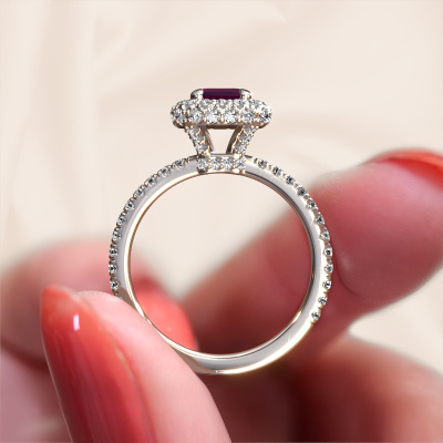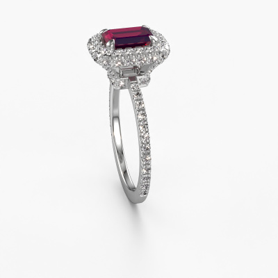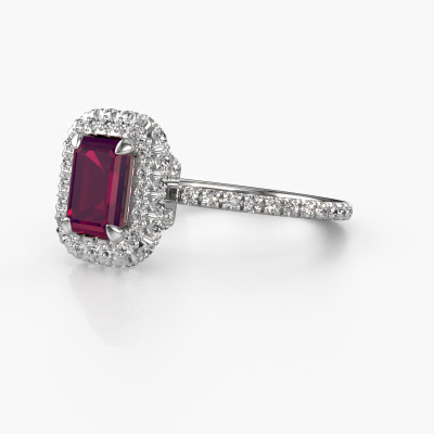 La bague de fiançailles mentionnée ci-dessus est nommée Talitha EME. Nous appelons ce type de bague de fiançailles une bague Halo. La bague de fiançailles est forgée en or 14 Carat et comporte un rhodolite taille émeraude de la de 7x5 mm et autour duquel sont sertis de petits diamants synthétiques. La largeur de cette bague de fiançailles halo forgée en or blanc luxes vient des plus petites pierres précieuses qui sont serties autour du large rhodolite central. C’est également ce à partir de quoi cette belle bague de fiançailles tire son nom : halo signifie halo et c’est aussi l’effet que rendent les pierres précieuses plus petites. Cependant, ces pierres précieuses plus petites doivent toutes être serties de la même manière, afin que la lumière ne soit pas seulement introduite dans le rhodolite et qu’un véritable halo de lumière soit créé. Et c'est ce que font nos maîtres orfèvres. Avec la plus grande précision, chaque rhodolite soigneusement sélectionné est placé à la main dans la bague de fiançailles. Encore et encore, la bague de fiançailles est maintenue à la lumière pour voir si l'effet spécial est toujours visible. Le résultat est une bague de fiançailles unique, où le rhodolite choisi devient littéralement le centre brillants. Vous pouvez imaginer que cette bague de fiançailles est vraiment une bague de fiançailles significative à offrir à votre amour de la vie ! Le jour où vous montrez qu’elle est votre centre brillants ! Qu'y a-t-il dorénavant de plus beau qu'une bague de fiançailles luxes conçue par vous-même et fabriquée à la main par nous. Vous pouvez personnaliser chaque modèle avec les différents métaux précieux et pierres précieuses. De cette façon, vous pourrez créer une bague de fiançailles unique. Cette bague peut être mise en place de plusieurs façons. Bien sûr, vous pouvez toujours nous contacter et nous serons heureux de vous aider à composer votre bague de fiançailles luxes Talitha EME. Vous aimez le design, mais vous souhaitez tout de même quelque chose qui vous convienne plus, ou bien vous souhaitez une pierre précieuse dans les bijoux que vous ne pouvez pas choisir sur notre site, contactez-nous et nous vous aiderons.Notre équipe ajoute quotidiennement de nouveaux modèles à notre collection en ligne. Nos designers et orfèvres travaillent ensemble pour créer le meilleur design. Nous nous efforçons d'offrir une collection diversifiée de bijoux. Peut-être avez-vous déjà en tête un bijou en particulier ? Un bijou que vous avez trouvé quelque part. Veuillez nous contacter pour une consultation gratuite. Nous vous ferons une offre, basée sur un rapport qualité / prix juste, qui vous déconcertera.Pour vous faciliter la tâche, vous pouvez facilement nous retourner tout bijou commandé dans les 30 jours suivant la livraison.