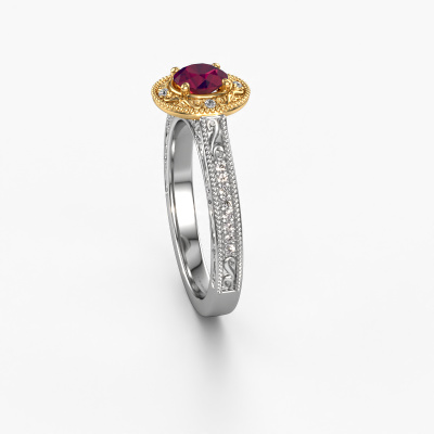Nous avons donné le nom Alice RND à cette bague de fiançailles. Cette bague forgée en or 14 Carat est sertie d’un rhodolite de 5 mm. Cette bague est une large bague vintage forgée en or blanc unique qui fera certainement briller l’amour de votre vie ! Et c'est exactement ce que nous avons comme objectif. Un beau rhodolite est serti dans cette bague de fiançailles vintage. Vous pouvez, bien entendu, utiliser chaque pierre précieuses que nous proposons sur notre site La pierre précieuse sera sélectionnée avec soin, car nous pensons que seule la plus belle des pierres précieuses peut briller sur votre bague de fiançailles millegrain, qu’en dites-vous ? Notre orfèvre fabrique votre bague de fiançailles dans notre propre atelier et place le rhodolite dans l'anneau de la bague avec une précision extrême. Donc, elle est travaillée et polie jusqu'à ce que le résultat désiré soit visible : la bague de fiançailles parfaite pour l'amour de votre vie ! Ce bijou est fabriquées avec passion et amour par l'un de nos maîtres orfèvres.Vous avez peut-être remarqué que nos prix sont en moyenne inférieurs de 30% à ceux d'un autre bijoutier. Et ce alors que la qualité de nos bijoux est même plus élevée dans la plupart des cas ! En effet, nos orfèvres fabriquent votre bague de fiançailles directement dans notre propre atelier. Cela signifie que nous n'avons pas à inclure des frais de stocks coûteux et que nous pouvons travailler n'importe quel détail directement sur votre bague de fiançailles.Notre équipe ajoute quotidiennement de nouveaux modèles à notre collection en ligne. Nos designers et orfèvres travaillent ensemble pour créer le meilleur design. Nous nous efforçons d'offrir une collection diversifiée de bijoux. Peut-être avez-vous déjà en tête un bijou en particulier ? Un bijou que vous avez trouvé quelque part. Veuillez nous contacter pour une consultation gratuite. Nous vous ferons une offre, basée sur un rapport qualité / prix juste, qui vous déconcertera.Pour vous faciliter la tâche, vous pouvez facilement nous retourner tout bijou commandé dans les 30 jours suivant la livraison.
