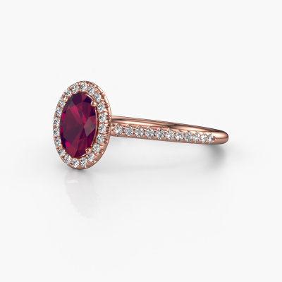 La bague de fiançailles mentionnée ci-dessus est nommée Seline ovl 2. Nous appelons ce type de bague de fiançailles une bague Halo. La bague de fiançailles est forgée en or 14 Carat et comporte un rhodolite ovale de la de 7x5 mm et autour duquel sont sertis de petits diamants. La largeur de cette bague de fiançailles halo forgée en or rose exclusives vient des plus petites pierres précieuses qui sont serties autour du large rhodolite central. C’est également ce à partir de quoi cette belle bague de fiançailles tire son nom : halo signifie halo et c’est aussi l’effet que rendent les pierres précieuses plus petites. Cependant, ces pierres précieuses plus petites doivent toutes être serties de la même manière, afin que la lumière ne soit pas seulement introduite dans le rhodolite et qu’un véritable halo de lumière soit créé. Et c'est ce que font nos maîtres orfèvres. Avec la plus grande précision, chaque rhodolite soigneusement sélectionné est placé à la main dans la bague de fiançailles. Encore et encore, la bague de fiançailles est maintenue à la lumière pour voir si l'effet spécial est toujours visible. Le résultat est une bague de fiançailles unique, où le rhodolite choisi devient littéralement le centre brillants. Vous pouvez imaginer que cette bague de fiançailles est vraiment une bague de fiançailles significative à offrir à votre amour de la vie ! Le jour où vous montrez qu’elle est votre centre brillants ! Nos orfèvres ne fabriqueront votre bague de fiançailles qu'une fois que vous l'aurez commandée. Nous ne faisons pas de stock. L'avantage de cela est que nous n'avons pas à inclure les frais de stockage dans nos prix, et nous pouvons donc vous offrir des bijoux à un prix très bas.Notre équipe ajoute quotidiennement de nouveaux modèles à notre collection en ligne. Nos designers et orfèvres travaillent ensemble pour créer le meilleur design. Nous nous efforçons d'offrir une collection diversifiée de bijoux. Peut-être avez-vous déjà en tête un bijou en particulier ? Un bijou que vous avez trouvé quelque part. Veuillez nous contacter pour une consultation gratuite. Nous vous ferons une offre, basée sur un rapport qualité / prix juste, qui vous déconcertera.Pour vous faciliter la tâche, vous pouvez facilement nous retourner tout bijou commandé dans les 30 jours suivant la livraison.