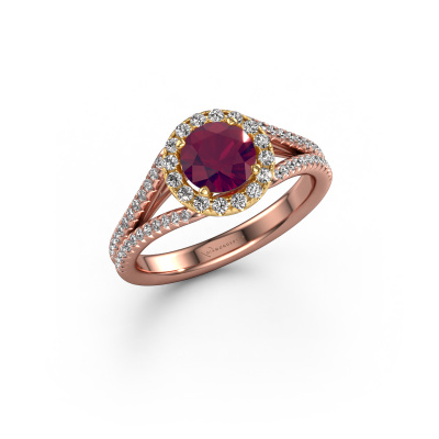 Cette bague de fiançailles porte le nom Verla rnd 2. Cette bague de fiançailles bandes séparées est forgée en or 14 Carat et est sertie d’un rhodolite de 6.5 mm. Cette bague de fiançailles halo et forgée en or rose unique est un pur travail d’art ! Tous les petits détails ont été fabriqués avec beaucoup de patience et de passion par notre orfèvre. Ce métier nécessite un œil expert et une main habile pour assembler cette bague de fiançailles avec la plus grande précision. Et ce travail est précisément ce qui enthousiasme nos orfèvres ! Les plus beaux rhodolites sont sertis de manière large, de telle sorte qu'ils puissent rendre un effet encore meilleurs. Cela donne donc une allure supplémentaire à la bague de fiançailles. La bague de fiançailles est unique en raison de sa pierre précieuse naturelle, que nous avons spécialement sélectionnée pour cette bague. De plus, vous pouvez choisir vous-même la composition du métal précieux de votre bague. Vous aurez donc créé une bague de fiançailles unique pour la femmes la plus unique de votre vie ! Ce bijou est spécialement conçues pour vous, avec une attention particulière portée aux détails et au design.Puisque nous concevons et livrons nos propres bijoux, nous sommes en mesure de vous proposer une bague de fiançailles à un prix que vous ne pourrez pas trouver ailleurs. Une alliance est fabriquée sur commande, ce qui permet d'éviter les excédents de matériel et nous permet de vous proposer une superbe offre de prix. Nous comprenons qu'acheter votre bague de fiançailles en ligne soit un risque, mais nous vous assistons volontiers dans le processus de conception, en tenant compte de votre budget.Notre équipe ajoute quotidiennement de nouveaux modèles à notre collection en ligne. Nos designers et orfèvres travaillent ensemble pour créer le meilleur design. Nous nous efforçons d'offrir une collection diversifiée de bijoux. Peut-être avez-vous déjà en tête un bijou en particulier ? Un bijou que vous avez trouvé quelque part. Veuillez nous contacter pour une consultation gratuite. Nous vous ferons une offre, basée sur un rapport qualité / prix juste, qui vous déconcertera.Pour vous faciliter la tâche, vous pouvez facilement nous retourner tout bijou commandé dans les 30 jours suivant la livraison.