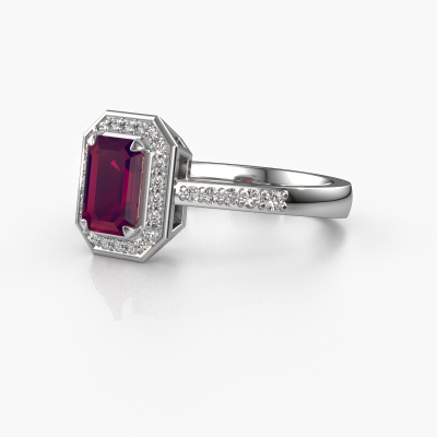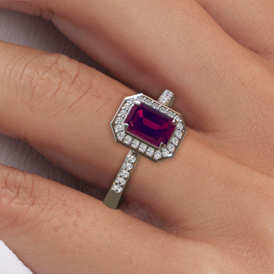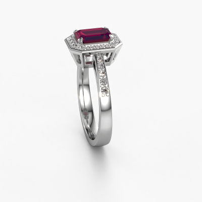 Cette bague de fiançailles porte le nom Dodie 2 eme. Cette bague de fiançailles belles est forgée en or et est sertie d’un rhodolite de 7x5 mm. Cette bague de fiançailles halo et forgée en platine unique est un pur travail d’art ! Tous les petits détails ont été fabriqués avec beaucoup de patience et de passion par notre orfèvre. Ce métier nécessite un œil expert et une main habile pour assembler cette bague de fiançailles avec la plus grande précision. Et ce travail est précisément ce qui enthousiasme nos orfèvres ! Les plus beaux rhodolites sont sertis de manière large, de telle sorte qu'ils puissent rendre un effet encore meilleurs. Cela donne donc une allure supplémentaire à la bague de fiançailles. La bague de fiançailles est unique en raison de sa pierre précieuse naturelle, que nous avons spécialement sélectionnée pour cette bague. De plus, vous pouvez choisir vous-même la composition du métal précieux de votre bague. Vous aurez donc créé une bague de fiançailles unique pour la femmes la plus unique de votre vie ! Ce bijou est spécialement conçues pour vous, avec une attention particulière portée aux détails et au design.Puisque nous concevons et livrons nos propres bijoux, nous sommes en mesure de vous proposer une bague de fiançailles à un prix que vous ne pourrez pas trouver ailleurs. Une alliance est fabriquée sur commande, ce qui permet d'éviter les excédents de matériel et nous permet de vous proposer une superbe offre de prix. Nous comprenons qu'acheter votre bague de fiançailles en ligne soit un risque, mais nous vous assistons volontiers dans le processus de conception, en tenant compte de votre budget.Avez-vous déjà des bague de fiançailles spécifiques en tête ? Une bague de fiançailles que vous avez vu quelque part. N'hésitez pas à nous faire part de vos souhaits et nous transformerons votre design en des bague de fiançailles uniques. Vous êtes en mesure de suivre l'évolution de la conception de vos bague de fiançailles car nous utilisons des dessins en 3D. Cela vous donnera un aperçu réaliste de votre design. Nous vous enverrons volontiers une offre sans engagement basée sur un rapport qualité / prix juste. Elle va vous étonner.Pour vous faciliter la tâche, vous pouvez facilement nous retourner tout bijou commandé dans les 30 jours suivant la livraison.