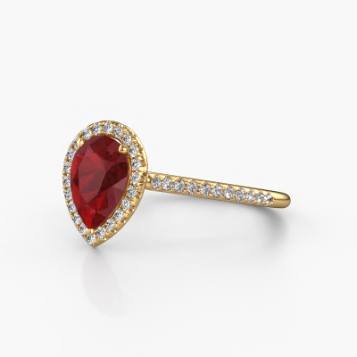 La bague de fiançailles mentionnée ci-dessus est nommée Seline per 2. Nous appelons ce type de bague de fiançailles une bague Halo. La bague de fiançailles est forgée en or 14 Carat et comporte un rubis poire de la de 8x6 mm et autour duquel sont sertis de petits diamants. La largeur de cette bague de fiançailles halo forgée en or jaune classiques vient des plus petites pierres précieuses qui sont serties autour du large rubis central. C’est également ce à partir de quoi cette belle bague de fiançailles tire son nom : halo signifie halo et c’est aussi l’effet que rendent les pierres précieuses plus petites. Cependant, ces pierres précieuses plus petites doivent toutes être serties de la même manière, afin que la lumière ne soit pas seulement introduite dans le rubis et qu’un véritable halo de lumière soit créé. Et c'est ce que font nos maîtres orfèvres. Avec la plus grande précision, chaque rubis soigneusement sélectionné est placé à la main dans la bague de fiançailles. Encore et encore, la bague de fiançailles est maintenue à la lumière pour voir si l'effet spécial est toujours visible. Le résultat est une bague de fiançailles unique, où le rubis choisi devient littéralement le centre brillants. Vous pouvez imaginer que cette bague de fiançailles est vraiment une bague de fiançailles significative à offrir à votre amour de la vie ! Le jour où vous montrez qu’elle est votre centre brillants ! Puisque nous concevons et livrons nos propres bijoux, nous sommes en mesure de vous proposer une bague de fiançailles à un prix que vous ne pourrez pas trouver ailleurs. Une alliance est fabriquée sur commande, ce qui permet d'éviter les excédents de matériel et nous permet de vous proposer une superbe offre de prix. Nous comprenons qu'acheter votre bague de fiançailles en ligne soit un risque, mais nous vous assistons volontiers dans le processus de conception, en tenant compte de votre budget.Notre équipe de designers talentueux et passionnés ajoute chaque jour de nouveaux modèles bague de fiançailles à notre collection en ligne. Notre objectif est de pouvoir vous offrir une grande variété de bijoux. N'hésitez pas à demander un devis si vous avez des souhaits spécifiques pour votre bague de fiançailles. Nous garantissons de vous faire une offre que vous ne pourrez pas refuser.Pour vous faciliter la tâche, vous pouvez facilement nous retourner tout bijou commandé dans les 30 jours suivant la livraison.