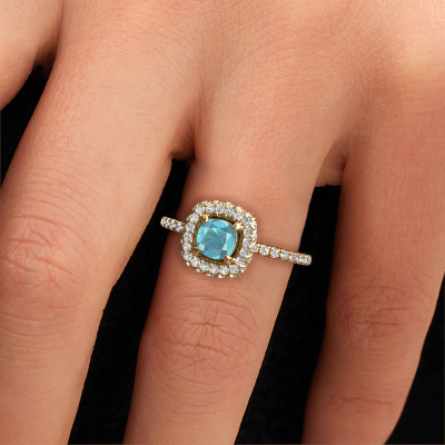 La bague de fiançailles mentionnée ci-dessus est nommée Talitha CUS. Nous appelons ce type de bague de fiançailles une bague Halo. La bague de fiançailles est forgée en or 14 Carat et comporte un topaze bleue coussin de la de 5 mm et autour duquel sont sertis de petits diamants. La largeur de cette bague de fiançailles halo forgée en or jaune traditionnelles vient des plus petites pierres précieuses qui sont serties autour du large topaze bleue central. C’est également ce à partir de quoi cette belle bague de fiançailles tire son nom : halo signifie halo et c’est aussi l’effet que rendent les pierres précieuses plus petites. Cependant, ces pierres précieuses plus petites doivent toutes être serties de la même manière, afin que la lumière ne soit pas seulement introduite dans le topaze bleue et qu’un véritable halo de lumière soit créé. Et c'est ce que font nos maîtres orfèvres. Avec la plus grande précision, chaque topaze bleue soigneusement sélectionné est placé à la main dans la bague de fiançailles. Encore et encore, la bague de fiançailles est maintenue à la lumière pour voir si l'effet spécial est toujours visible. Le résultat est une bague de fiançailles unique, où le topaze bleue choisi devient littéralement le centre brillants. Vous pouvez imaginer que cette bague de fiançailles est vraiment une bague de fiançailles significative à offrir à votre amour de la vie ! Le jour où vous montrez qu’elle est votre centre brillants ! Puisque nous concevons et livrons nos propres bijoux, nous sommes en mesure de vous proposer une bague de fiançailles à un prix que vous ne pourrez pas trouver ailleurs. Une alliance est fabriquée sur commande, ce qui permet d'éviter les excédents de matériel et nous permet de vous proposer une superbe offre de prix. Nous comprenons qu'acheter votre bague de fiançailles en ligne soit un risque, mais nous vous assistons volontiers dans le processus de conception, en tenant compte de votre budget.Notre équipe de designers talentueux et passionnés ajoute chaque jour de nouveaux modèles bague de fiançailles à notre collection en ligne. Notre objectif est de pouvoir vous offrir une grande variété de bijoux. N'hésitez pas à demander un devis si vous avez des souhaits spécifiques pour votre bague de fiançailles. Nous garantissons de vous faire une offre que vous ne pourrez pas refuser.Pour vous faciliter la tâche, vous pouvez facilement nous retourner tout bijou commandé dans les 30 jours suivant la livraison.