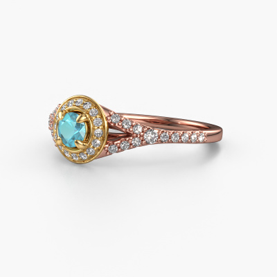 Cette bague de fiançailles porte le nom Pamela RND. Cette bague de fiançailles ajour est forgée en or 14 Carat et est sertie d’un topaze bleue de 4 mm. Cette bague de fiançailles halo et forgée en or rose unique est un pur travail d’art ! Tous les petits détails ont été fabriqués avec beaucoup de patience et de passion par notre orfèvre. Ce métier nécessite un œil expert et une main habile pour assembler cette bague de fiançailles avec la plus grande précision. Et ce travail est précisément ce qui enthousiasme nos orfèvres ! Les plus beaux topaze bleue sont sertis de manière large, de telle sorte qu'ils puissent rendre un effet encore meilleurs. Cela donne donc une allure supplémentaire à la bague de fiançailles. La bague de fiançailles est unique en raison de sa pierre précieuse naturelle, que nous avons spécialement sélectionnée pour cette bague. De plus, vous pouvez choisir vous-même la composition du métal précieux de votre bague. Vous aurez donc créé une bague de fiançailles unique pour la femmes la plus unique de votre vie ! Ce bijou est unique car vous pouvez entièrement l'assembler à votre guise.Puisque nous concevons et livrons nos propres bijoux, nous sommes en mesure de vous proposer une bague de fiançailles à un prix que vous ne pourrez pas trouver ailleurs. Une alliance est fabriquée sur commande, ce qui permet d'éviter les excédents de matériel et nous permet de vous proposer une superbe offre de prix. Nous comprenons qu'acheter votre bague de fiançailles en ligne soit un risque, mais nous vous assistons volontiers dans le processus de conception, en tenant compte de votre budget.Notre équipe ajoute quotidiennement de nouveaux modèles à notre collection en ligne. Nos designers et orfèvres travaillent ensemble pour créer le meilleur design. Nous nous efforçons d'offrir une collection diversifiée de bijoux. Peut-être avez-vous déjà en tête un bijou en particulier ? Un bijou que vous avez trouvé quelque part. Veuillez nous contacter pour une consultation gratuite. Nous vous ferons une offre, basée sur un rapport qualité / prix juste, qui vous déconcertera.Pour vous faciliter la tâche, vous pouvez facilement nous retourner tout bijou commandé dans les 30 jours suivant la livraison.