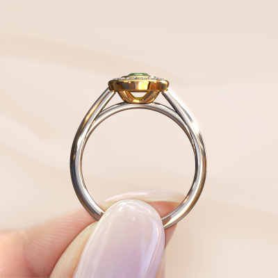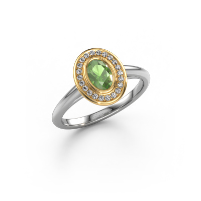 La bague de fiançailles mentionnée ci-dessus est nommée Noud 1 OVL. Nous appelons ce type de bague de fiançailles une bague Halo. La bague de fiançailles est forgée en or 14 Carat et comporte un vert tourmaline ovale de la de 6x4 mm et autour duquel sont sertis de petits diamants synthétiques. La largeur de cette bague de fiançailles halo forgée en or blanc classiques vient des plus petites pierres précieuses qui sont serties autour du large vert tourmaline central. C’est également ce à partir de quoi cette belle bague de fiançailles tire son nom : halo signifie halo et c’est aussi l’effet que rendent les pierres précieuses plus petites. Cependant, ces pierres précieuses plus petites doivent toutes être serties de la même manière, afin que la lumière ne soit pas seulement introduite dans le vert tourmaline et qu’un véritable halo de lumière soit créé. Et c'est ce que font nos maîtres orfèvres. Avec la plus grande précision, chaque vert tourmaline soigneusement sélectionné est placé à la main dans la bague de fiançailles. Encore et encore, la bague de fiançailles est maintenue à la lumière pour voir si l'effet spécial est toujours visible. Le résultat est une bague de fiançailles unique, où le vert tourmaline choisi devient littéralement le centre brillants. Vous pouvez imaginer que cette bague de fiançailles est vraiment une bague de fiançailles significative à offrir à votre amour de la vie ! Le jour où vous montrez qu’elle est votre centre brillants ! En combinant les dernières techniques modernes, associées à une fabrication ancienne, nous sommes en mesure de fabriquer nos bagues de fiançailles dans notre propre studio. Chaque bijou est fabriqué sur commande. Ceci est avantageux car nous sommes en mesure de vous proposer un prix que vous ne trouverez nulle part ailleurs.Notre équipe ajoute quotidiennement de nouveaux modèles à notre collection en ligne. Nos designers et orfèvres travaillent ensemble pour créer le meilleur design. Nous nous efforçons d'offrir une collection diversifiée de bijoux. Peut-être avez-vous déjà en tête un bijou en particulier ? Un bijou que vous avez trouvé quelque part. Veuillez nous contacter pour une consultation gratuite. Nous vous ferons une offre, basée sur un rapport qualité / prix juste, qui vous déconcertera.Pour vous faciliter la tâche, vous pouvez facilement nous retourner tout bijou commandé dans les 30 jours suivant la livraison.