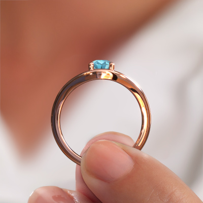Le nom de cette bague de fiançailles est Femke PER. Elle est forgée en or 14 Carat et est sertie d'un topaze bleue de 7x5 mm. Êtes-vous à la recherche d'une bague de fiançailles forgée en or rose luxes que vous pourrez adapter à votre goût ?