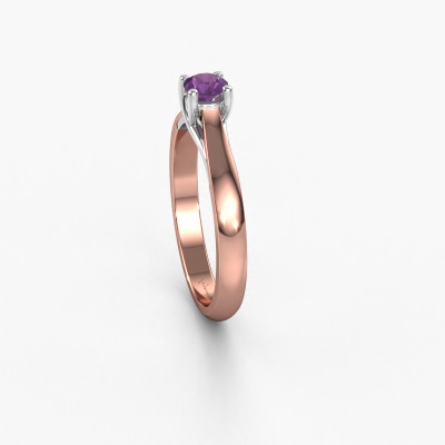 Nous avons donné le nom Mia 1 à la bague de fiançailles mentionnée ci-dessous. Ce type de bague de fiançailles s'appelle une bague de fiançailles Solitaire car elle ne contient qu’une seule pierre précieuse. La bague de fiançailles est forgée en or 14 Carat et comporte un améthyste ronds d’une de 4 mm. Cette belle bague de fiançailles solitaire forgée en or rose modernes est ornée d'un magnifique améthyste ronds qui rendra votre demande en mariage très spéciale. Le sertissage chaton ouvert crée un magnifique effet de lumière sur le diamants. Saviez-vous que le diamants symbolise l'amour et la fidélité éternels ? C'est précisément la raison pour laquelle c'est une magnifique pierre précieuse à mettre au centre. Notre orfèvre place la pierre précieuse en élévation sur la bague, ce qui la fera attirer tous les regards. Chaque bijou est fabriquée spécialement pour vous par nos maîtres orfèvres dans notre propre atelier.Qu'y a-t-il dorénavant de plus beau qu'une bague de fiançailles modernes conçue par vous-même et fabriquée à la main par nous. Vous pouvez personnaliser chaque modèle avec les différents métaux précieux et pierres précieuses. De cette façon, vous pourrez créer une bague de fiançailles unique. Cette bague peut être mise en place de plusieurs façons. Bien sûr, vous pouvez toujours nous contacter et nous serons heureux de vous aider à composer votre bague de fiançailles modernes Mia 1. Vous aimez le design, mais vous souhaitez tout de même quelque chose qui vous convienne plus, ou bien vous souhaitez une pierre précieuse dans les bijoux que vous ne pouvez pas choisir sur notre site, contactez-nous et nous vous aiderons.Notre équipe de designers talentueux et passionnés ajoute chaque jour de nouveaux modèles bague de fiançailles à notre collection en ligne. Notre objectif est de pouvoir vous offrir une grande variété de bijoux. N'hésitez pas à demander un devis si vous avez des souhaits spécifiques pour votre bague de fiançailles. Nous garantissons de vous faire une offre que vous ne pourrez pas refuser.Pour vous faciliter la tâche, vous pouvez facilement nous retourner tout bijou commandé dans les 30 jours suivant la livraison.