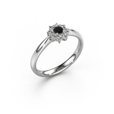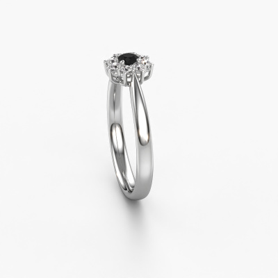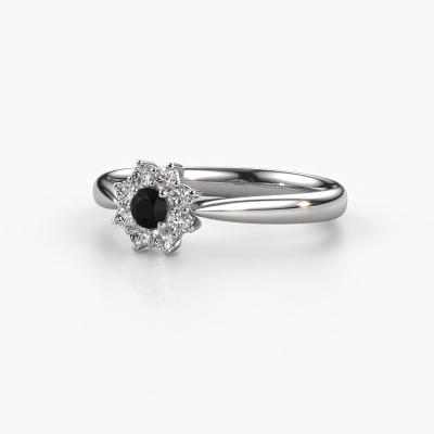 La bague de fiançailles présentée ci-dessus a été nommée Carolyn 1. Nous appelons ce type de bague de fiançailles une bague flower, dans laquelle de petites pierres précieuses sont serties autour de la pierre centrale dans un sertissage ouvert. Cette bague de fiançailles forgée en or 14 Carat a un diamant noir ronds de 0.12 crt en guise de pierre centrale qui est aussi entourée de petits diamants. La particularité de cette bague de fiançailles traditionnelles forgée en or blanc est sa forme : les petites pierres précieuses et le diamant noir forment une belle fleur qui semble se fondre en une large pierre précieuse étincelante. Cette bague de fiançailles est aussi appelée la bague de fiançailles fleur ou rosette. Nos maîtres orfèvres veillent à ce que les plus petits diamants soient tous sertis de la même manière, afin que la lumière passant au travers du diamant noir ne soit pas interrompue et qu'une belle unité soit créée. Avec un œil expérimenté et une main habile, chaque diamant noir soigneusement sélectionné est serti dans la bague de fiançailles. Toujours et encore, la bague de fiançailles est examinée sous la lumière pour voir si l'effet spécial désiré est encore visible. Le résultat est une bague de fiançailles unique, où le diamant noir choisi devient littéralement le centre brillants. Quelle bague de fiançailles belle et significative à offrir au centre qui brille dans votre vie ! Qu'y a-t-il dorénavant de plus beau qu'une bague de fiançailles traditionnelles conçue par vous-même et fabriquée à la main par nous. Vous pouvez personnaliser chaque modèle avec les différents métaux précieux et pierres précieuses. De cette façon, vous pourrez créer une bague de fiançailles unique. Cette bague peut être mise en place de plusieurs façons. Bien sûr, vous pouvez toujours nous contacter et nous serons heureux de vous aider à composer votre bague de fiançailles traditionnelles Carolyn 1. Vous aimez le design, mais vous souhaitez tout de même quelque chose qui vous convienne plus, ou bien vous souhaitez une pierre précieuse dans les bijoux que vous ne pouvez pas choisir sur notre site, contactez-nous et nous vous aiderons.Avez-vous déjà des bague de fiançailles spécifiques en tête ? Une bague de fiançailles que vous avez vu quelque part. N'hésitez pas à nous faire part de vos souhaits et nous transformerons votre design en des bague de fiançailles uniques. Vous êtes en mesure de suivre l'évolution de la conception de vos bague de fiançailles car nous utilisons des dessins en 3D. Cela vous donnera un aperçu réaliste de votre design. Nous vous enverrons volontiers une offre sans engagement basée sur un rapport qualité / prix juste. Elle va vous étonner.Pour vous faciliter la tâche, vous pouvez facilement nous retourner tout bijou commandé dans les 30 jours suivant la livraison.