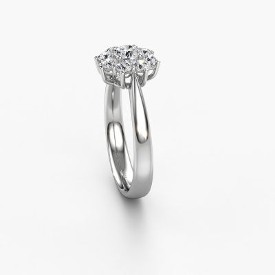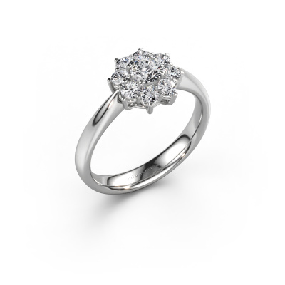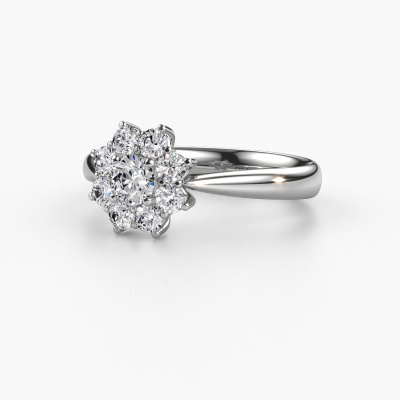 La bague de fiançailles présentée ci-dessus a été nommée Carolyn 1. Nous appelons ce type de bague de fiançailles une bague flower, dans laquelle de petites pierres précieuses sont serties autour de la pierre centrale dans un sertissage ouvert. Cette bague de fiançailles forgée en or 14 Carat a un diamant ronds de 0.25 crt en guise de pierre centrale qui est aussi entourée de petits diamants. La particularité de cette bague de fiançailles traditionnelles forgée en or blanc est sa forme : les petites pierres précieuses et le diamant forment une belle fleur qui semble se fondre en une large pierre précieuse étincelante. Cette bague de fiançailles est aussi appelée la bague de fiançailles fleur ou rosette. Nos maîtres orfèvres veillent à ce que les plus petits diamants soient tous sertis de la même manière, afin que la lumière passant au travers du diamant ne soit pas interrompue et qu'une belle unité soit créée. Avec un œil expérimenté et une main habile, chaque diamant soigneusement sélectionné est serti dans la bague de fiançailles. Toujours et encore, la bague de fiançailles est examinée sous la lumière pour voir si l'effet spécial désiré est encore visible. Le résultat est une bague de fiançailles unique, où le diamant choisi devient littéralement le centre brillants. Quelle bague de fiançailles belle et significative à offrir au centre qui brille dans votre vie ! Qu'y a-t-il dorénavant de plus beau qu'une bague de fiançailles traditionnelles conçue par vous-même et fabriquée à la main par nous. Vous pouvez personnaliser chaque modèle avec les différents métaux précieux et pierres précieuses. De cette façon, vous pourrez créer une bague de fiançailles unique. Cette bague peut être mise en place de plusieurs façons. Bien sûr, vous pouvez toujours nous contacter et nous serons heureux de vous aider à composer votre bague de fiançailles traditionnelles Carolyn 1. Vous aimez le design, mais vous souhaitez tout de même quelque chose qui vous convienne plus, ou bien vous souhaitez une pierre précieuse dans les bijoux que vous ne pouvez pas choisir sur notre site, contactez-nous et nous vous aiderons.Avez-vous déjà des bague de fiançailles spécifiques en tête ? Une bague de fiançailles que vous avez vu quelque part. N'hésitez pas à nous faire part de vos souhaits et nous transformerons votre design en des bague de fiançailles uniques. Vous êtes en mesure de suivre l'évolution de la conception de vos bague de fiançailles car nous utilisons des dessins en 3D. Cela vous donnera un aperçu réaliste de votre design. Nous vous enverrons volontiers une offre sans engagement basée sur un rapport qualité / prix juste. Elle va vous étonner.Pour vous faciliter la tâche, vous pouvez facilement nous retourner tout bijou commandé dans les 30 jours suivant la livraison.