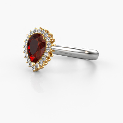 La bague de fiançailles présentée ci-dessus a été nommée Tilly per 1. Nous appelons ce type de bague de fiançailles une bague entourage, dans laquelle de petites pierres précieuses sont serties autour de la pierre centrale dans un sertissage ouvert. Cette bague de fiançailles forgée en or 14 Carat a un grenat poire de 8x6 mm en guise de pierre centrale qui est aussi entourée de petits diamants. La particularité de cette bague de fiançailles exclusives forgée en or blanc est sa forme : les petites pierres précieuses et le grenat forment une belle fleur qui semble se fondre en une large pierre précieuse étincelante. Cette bague de fiançailles est aussi appelée la bague de fiançailles fleur ou rosette. Nos maîtres orfèvres veillent à ce que les plus petits diamants soient tous sertis de la même manière, afin que la lumière passant au travers du grenat ne soit pas interrompue et qu'une belle unité soit créée. Avec un œil expérimenté et une main habile, chaque grenat soigneusement sélectionné est serti dans la bague de fiançailles. Toujours et encore, la bague de fiançailles est examinée sous la lumière pour voir si l'effet spécial désiré est encore visible. Le résultat est une bague de fiançailles unique, où le grenat choisi devient littéralement le centre brillants. Quelle bague de fiançailles belle et significative à offrir au centre qui brille dans votre vie ! Nos orfèvres ne fabriqueront votre bague de fiançailles qu'une fois que vous l'aurez commandée. Nous ne faisons pas de stock. L'avantage de cela est que nous n'avons pas à inclure les frais de stockage dans nos prix, et nous pouvons donc vous offrir des bijoux à un prix très bas.Notre équipe ajoute quotidiennement de nouveaux modèles à notre collection en ligne. Nos designers et orfèvres travaillent ensemble pour créer le meilleur design. Nous nous efforçons d'offrir une collection diversifiée de bijoux. Peut-être avez-vous déjà en tête un bijou en particulier ? Un bijou que vous avez trouvé quelque part. Veuillez nous contacter pour une consultation gratuite. Nous vous ferons une offre, basée sur un rapport qualité / prix juste, qui vous déconcertera.Pour vous faciliter la tâche, vous pouvez facilement nous retourner tout bijou commandé dans les 30 jours suivant la livraison.