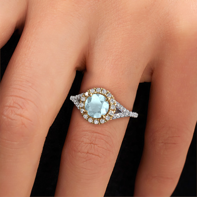 La bague de fiançailles mentionnée ci-dessus a été nommée Kimber RND. Ce type de bague de fiançailles est appelé une bague de fiançailles solitaire pavé car elle ne comporte qu’une seule pierre centrale et les tiges de la bague de fiançailles sont également pleins. La bague de fiançailles est faite dans une combinaison d'or 14 Carat et d’or jaune et a un aigue-marine ronds d’une de 7 mm, et des diamants synthétiques sont sertis sur les épaules de l’anneau. Chaque bijou est faite pour briller sur votre doigt, chaque bijou est fabriqué à la main par nos orfèvres. Cette bague de fiançailles solitaire pavé forgée en or blanc classiques a un beau aigues-marines ronds comme pierre centrale, avec plus de aigues-marines sertis dans la bague pour accentuer encore plus la présence de la pierre centrale. Le sertissage à griffes autour du aigue-marine étant ouvert, le aigue-marine capte la lumière de tous les côtés et brille de manière optimale. Ci-dessus, vous pouvez voir comment notre orfèvre travaille la bague de fiançailles avec une extrême précision dans les moindres détails, de telle sorte que le aigue-marine élevé puisse attirer tous les regards. Quelle belle bague de fiançailles à offrir lors de votre demande en mariage à l'amour de votre vie, à votre centre rayonnant ! Saviez-vous que nous offrons la garantie du meilleur prix pour votre bague de fiançailles? Cela est possible car tous nos bijoux sont fabriqués à la main dans notre propre atelier. Nous n'avons pas de frais de stocks qui sont coûteux, et nous fabriquons votre bague uniquement une fois que vous l'avez commandée. Grâce au fait que nous ayons toute la production du bijou en main, nous pouvons vous informer sur toutes les caractéristiques de cette bague de fiançailles. C’est précisément parce que l’achat d’une bague en ligne est une expérience excitante que nous comprenons qu’il est plus confortable pour vous de connaître toutes les caractéristiques de votre bague.Notre équipe ajoute quotidiennement de nouveaux modèles à notre collection en ligne. Nos designers et orfèvres travaillent ensemble pour créer le meilleur design. Nous nous efforçons d'offrir une collection diversifiée de bijoux. Peut-être avez-vous déjà en tête un bijou en particulier ? Un bijou que vous avez trouvé quelque part. Veuillez nous contacter pour une consultation gratuite. Nous vous ferons une offre, basée sur un rapport qualité / prix juste, qui vous déconcertera.Pour vous faciliter la tâche, vous pouvez facilement nous retourner tout bijou commandé dans les 30 jours suivant la livraison.