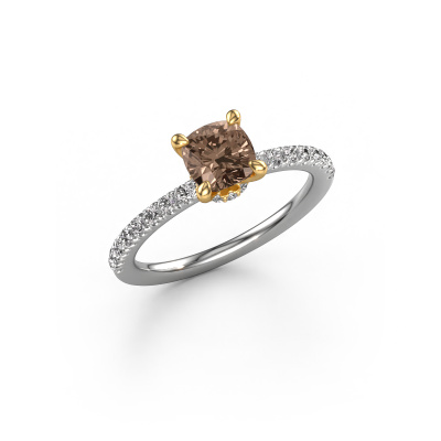 La bague de fiançailles mentionnée ci-dessus a été nommée Crystal CUS 4. Ce type de bague de fiançailles est appelé une bague de fiançailles solitaire pavé car elle ne comporte qu’une seule pierre centrale et les tiges de la bague de fiançailles sont également pleins. La bague de fiançailles est faite dans une combinaison d'or 14 Carat et d’or jaune et a un diamant brun coussin d’une de 1.00 crt, et des diamants sont sertis sur les épaules de l’anneau. Chaque bijou est faite pour briller sur votre doigt, chaque bijou est fabriqué à la main par nos orfèvres. Cette bague de fiançailles solitaire pavé forgée en or blanc élégants a un beau diamants bruns coussin comme pierre centrale, avec plus de diamants bruns sertis dans la bague pour accentuer encore plus la présence de la pierre centrale. Le sertissage à griffes autour du diamant brun étant ouvert, le diamant brun capte la lumière de tous les côtés et brille de manière optimale. Ci-dessus, vous pouvez voir comment notre orfèvre travaille la bague de fiançailles avec une extrême précision dans les moindres détails, de telle sorte que le diamant brun élevé puisse attirer tous les regards. Quelle belle bague de fiançailles à offrir lors de votre demande en mariage à l'amour de votre vie, à votre centre rayonnant ! Qu'y a-t-il dorénavant de plus beau qu'une bague de fiançailles élégants conçue par vous-même et fabriquée à la main par nous. Vous pouvez personnaliser chaque modèle avec les différents métaux précieux et pierres précieuses. De cette façon, vous pourrez créer une bague de fiançailles unique. Cette bague peut être mise en place de plusieurs façons. Bien sûr, vous pouvez toujours nous contacter et nous serons heureux de vous aider à composer votre bague de fiançailles élégants Crystal CUS 4. Vous aimez le design, mais vous souhaitez tout de même quelque chose qui vous convienne plus, ou bien vous souhaitez une pierre précieuse dans les bijoux que vous ne pouvez pas choisir sur notre site, contactez-nous et nous vous aiderons.Avez-vous déjà des bague de fiançailles spécifiques en tête ? Une bague de fiançailles que vous avez vu quelque part. N'hésitez pas à nous faire part de vos souhaits et nous transformerons votre design en des bague de fiançailles uniques. Vous êtes en mesure de suivre l'évolution de la conception de vos bague de fiançailles car nous utilisons des dessins en 3D. Cela vous donnera un aperçu réaliste de votre design. Nous vous enverrons volontiers une offre sans engagement basée sur un rapport qualité / prix juste. Elle va vous étonner.Pour vous faciliter la tâche, vous pouvez facilement nous retourner tout bijou commandé dans les 30 jours suivant la livraison.