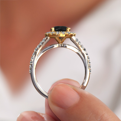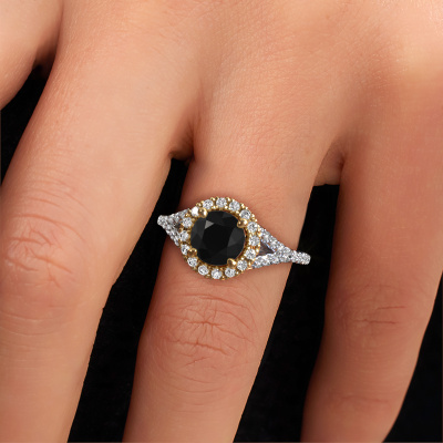 La bague de fiançailles mentionnée ci-dessus a été nommée Kimber RND. Ce type de bague de fiançailles est appelé une bague de fiançailles solitaire pavé car elle ne comporte qu’une seule pierre centrale et les tiges de la bague de fiançailles sont également pleins. La bague de fiançailles est faite dans une combinaison d'or 14 Carat et d’or jaune et a un diamant noir ronds d’une de 1.80 crt, et des diamants synthétiques sont sertis sur les épaules de l’anneau. Chaque bijou est faite pour briller sur votre doigt, chaque bijou est fabriqué à la main par nos orfèvres. Cette bague de fiançailles solitaire pavé forgée en or blanc classiques a un beau diamants noirs ronds comme pierre centrale, avec plus de diamants noirs sertis dans la bague pour accentuer encore plus la présence de la pierre centrale. Le sertissage à griffes autour du diamant noir étant ouvert, le diamant noir capte la lumière de tous les côtés et brille de manière optimale. Ci-dessus, vous pouvez voir comment notre orfèvre travaille la bague de fiançailles avec une extrême précision dans les moindres détails, de telle sorte que le diamant noir élevé puisse attirer tous les regards. Quelle belle bague de fiançailles à offrir lors de votre demande en mariage à l'amour de votre vie, à votre centre rayonnant ! Saviez-vous que nous offrons la garantie du meilleur prix pour votre bague de fiançailles? Cela est possible car tous nos bijoux sont fabriqués à la main dans notre propre atelier. Nous n'avons pas de frais de stocks qui sont coûteux, et nous fabriquons votre bague uniquement une fois que vous l'avez commandée. Grâce au fait que nous ayons toute la production du bijou en main, nous pouvons vous informer sur toutes les caractéristiques de cette bague de fiançailles. C’est précisément parce que l’achat d’une bague en ligne est une expérience excitante que nous comprenons qu’il est plus confortable pour vous de connaître toutes les caractéristiques de votre bague.Notre équipe ajoute quotidiennement de nouveaux modèles à notre collection en ligne. Nos designers et orfèvres travaillent ensemble pour créer le meilleur design. Nous nous efforçons d'offrir une collection diversifiée de bijoux. Peut-être avez-vous déjà en tête un bijou en particulier ? Un bijou que vous avez trouvé quelque part. Veuillez nous contacter pour une consultation gratuite. Nous vous ferons une offre, basée sur un rapport qualité / prix juste, qui vous déconcertera.Pour vous faciliter la tâche, vous pouvez facilement nous retourner tout bijou commandé dans les 30 jours suivant la livraison.