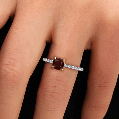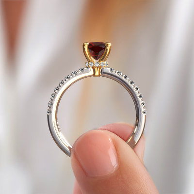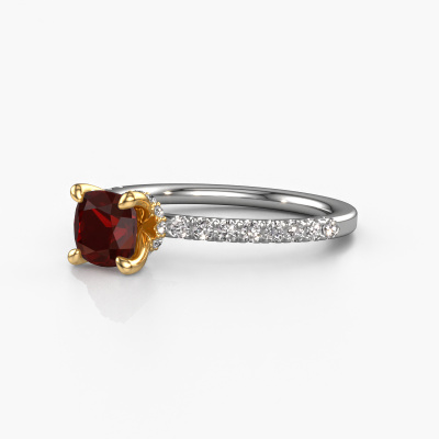 La bague de fiançailles mentionnée ci-dessus a été nommée Crystal CUS 4. Ce type de bague de fiançailles est appelé une bague de fiançailles solitaire pavé car elle ne comporte qu’une seule pierre centrale et les tiges de la bague de fiançailles sont également pleins. La bague de fiançailles est faite dans une combinaison d'or 14 Carat et d’or jaune et a un grenat coussin d’une de 5.5 mm, et des diamants sont sertis sur les épaules de l’anneau. Chaque bijou est faite pour briller sur votre doigt, chaque bijou est fabriqué à la main par nos orfèvres. Cette bague de fiançailles solitaire pavé forgée en or blanc élégants a un beau grenats coussin comme pierre centrale, avec plus de grenats sertis dans la bague pour accentuer encore plus la présence de la pierre centrale. Le sertissage à griffes autour du grenat étant ouvert, le grenat capte la lumière de tous les côtés et brille de manière optimale. Ci-dessus, vous pouvez voir comment notre orfèvre travaille la bague de fiançailles avec une extrême précision dans les moindres détails, de telle sorte que le grenat élevé puisse attirer tous les regards. Quelle belle bague de fiançailles à offrir lors de votre demande en mariage à l'amour de votre vie, à votre centre rayonnant ! Qu'y a-t-il dorénavant de plus beau qu'une bague de fiançailles élégants conçue par vous-même et fabriquée à la main par nous. Vous pouvez personnaliser chaque modèle avec les différents métaux précieux et pierres précieuses. De cette façon, vous pourrez créer une bague de fiançailles unique. Cette bague peut être mise en place de plusieurs façons. Bien sûr, vous pouvez toujours nous contacter et nous serons heureux de vous aider à composer votre bague de fiançailles élégants Crystal CUS 4. Vous aimez le design, mais vous souhaitez tout de même quelque chose qui vous convienne plus, ou bien vous souhaitez une pierre précieuse dans les bijoux que vous ne pouvez pas choisir sur notre site, contactez-nous et nous vous aiderons.Avez-vous déjà des bague de fiançailles spécifiques en tête ? Une bague de fiançailles que vous avez vu quelque part. N'hésitez pas à nous faire part de vos souhaits et nous transformerons votre design en des bague de fiançailles uniques. Vous êtes en mesure de suivre l'évolution de la conception de vos bague de fiançailles car nous utilisons des dessins en 3D. Cela vous donnera un aperçu réaliste de votre design. Nous vous enverrons volontiers une offre sans engagement basée sur un rapport qualité / prix juste. Elle va vous étonner.Pour vous faciliter la tâche, vous pouvez facilement nous retourner tout bijou commandé dans les 30 jours suivant la livraison.