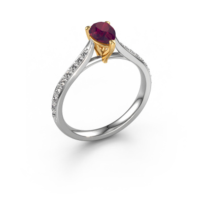 La bague de fiançailles mentionnée ci-dessus a été nommée Mignon per 2. Ce type de bague de fiançailles est appelé une bague de fiançailles solitaire pavé car elle ne comporte qu’une seule pierre centrale et les tiges de la bague de fiançailles sont également pleins. La bague de fiançailles est faite dans une combinaison d'or 14 Carat et d’or jaune et a un rhodolite poire d’une de 6.5x4.5 mm, et des diamants sont sertis sur les épaules de l’anneau. Chaque bijou est fabriquée spécialement pour vous par nos maîtres orfèvres dans notre propre atelier. Cette bague de fiançailles solitaire pavé forgée en or blanc tendances a un beau rhodolites poire comme pierre centrale, avec plus de rhodolites sertis dans la bague pour accentuer encore plus la présence de la pierre centrale. Le sertissage à griffes autour du rhodolite étant ouvert, le rhodolite capte la lumière de tous les côtés et brille de manière optimale. Ci-dessus, vous pouvez voir comment notre orfèvre travaille la bague de fiançailles avec une extrême précision dans les moindres détails, de telle sorte que le rhodolite élevé puisse attirer tous les regards. Quelle belle bague de fiançailles à offrir lors de votre demande en mariage à l'amour de votre vie, à votre centre rayonnant ! Vous avez peut-être remarqué que nos prix sont en moyenne inférieurs de 30% à ceux d'un autre bijoutier. Et ce alors que la qualité de nos bijoux est même plus élevée dans la plupart des cas ! En effet, nos orfèvres fabriquent votre bague de fiançailles directement dans notre propre atelier. Cela signifie que nous n'avons pas à inclure des frais de stocks coûteux et que nous pouvons travailler n'importe quel détail directement sur votre bague de fiançailles.Notre équipe ajoute quotidiennement de nouveaux modèles à notre collection en ligne. Nos designers et orfèvres travaillent ensemble pour créer le meilleur design. Nous nous efforçons d'offrir une collection diversifiée de bijoux. Peut-être avez-vous déjà en tête un bijou en particulier ? Un bijou que vous avez trouvé quelque part. Veuillez nous contacter pour une consultation gratuite. Nous vous ferons une offre, basée sur un rapport qualité / prix juste, qui vous déconcertera.Pour vous faciliter la tâche, vous pouvez facilement nous retourner tout bijou commandé dans les 30 jours suivant la livraison.