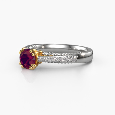 La bague de fiançailles mentionnée ci-dessus a été nommée Rozella. Ce type de bague de fiançailles est appelé une bague de fiançailles solitaire pavé car elle ne comporte qu’une seule pierre centrale et les tiges de la bague de fiançailles sont également pleins. La bague de fiançailles est faite dans une combinaison d'or 14 Carat et d’or jaune et a un rhodolite ronds d’une de 5.5 mm, et des diamants synthétiques sont sertis sur les épaules de l’anneau. Chaque bijou est fabriquées avec passion et amour par l'un de nos maîtres orfèvres. Cette bague de fiançailles solitaire pavé forgée en or blanc uniques a un beau rhodolites ronds comme pierre centrale, avec plus de rhodolites sertis dans la bague pour accentuer encore plus la présence de la pierre centrale. Le sertissage à griffes autour du rhodolite étant ouvert, le rhodolite capte la lumière de tous les côtés et brille de manière optimale. Ci-dessus, vous pouvez voir comment notre orfèvre travaille la bague de fiançailles avec une extrême précision dans les moindres détails, de telle sorte que le rhodolite élevé puisse attirer tous les regards. Quelle belle bague de fiançailles à offrir lors de votre demande en mariage à l'amour de votre vie, à votre centre rayonnant ! Nos orfèvres ne fabriqueront votre bague de fiançailles qu'une fois que vous l'aurez commandée. Nous ne faisons pas de stock. L'avantage de cela est que nous n'avons pas à inclure les frais de stockage dans nos prix, et nous pouvons donc vous offrir des bijoux à un prix très bas.Notre équipe de designers talentueux et passionnés ajoute chaque jour de nouveaux modèles bague de fiançailles à notre collection en ligne. Notre objectif est de pouvoir vous offrir une grande variété de bijoux. N'hésitez pas à demander un devis si vous avez des souhaits spécifiques pour votre bague de fiançailles. Nous garantissons de vous faire une offre que vous ne pourrez pas refuser.Pour vous faciliter la tâche, vous pouvez facilement nous retourner tout bijou commandé dans les 30 jours suivant la livraison.