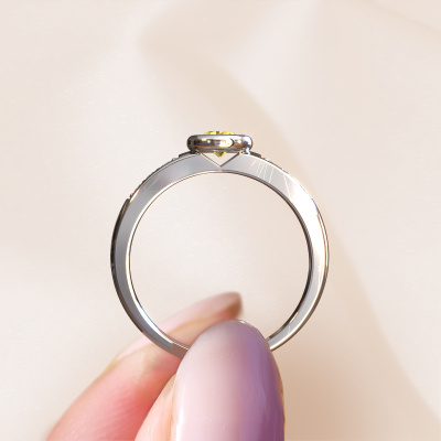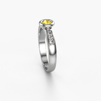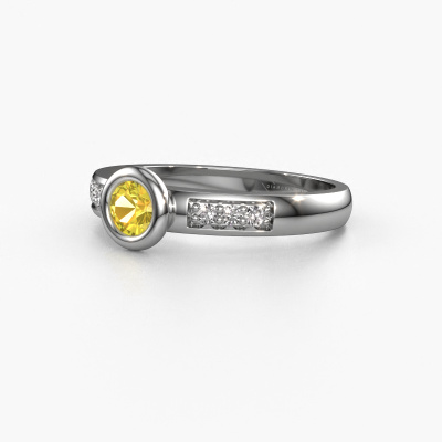 La bague de fiançailles mentionnée ci-dessus a été nommée Lieke. Ce type de bague de fiançailles est appelé une bague de fiançailles solitaire pavé car elle ne comporte qu’une seule pierre centrale et les tiges de la bague de fiançailles sont également pleins. La bague de fiançailles est faite dans une combinaison d'or 14 Carat et d’or blanc et a un saphir jaune ronds d’une de 4 mm, et des diamants sont sertis sur les épaules de l’anneau. Chaque bijou est unique, car vous pouvez concevoir ces bagues en fonction de vos souhaits. Cette bague de fiançailles solitaire pavé forgée en or blanc classiques a un beau saphirs jaunes ronds comme pierre centrale, avec plus de saphirs jaunes sertis dans la bague pour accentuer encore plus la présence de la pierre centrale. Le sertissage à griffes autour du saphir jaune étant ouvert, le saphir jaune capte la lumière de tous les côtés et brille de manière optimale. Ci-dessus, vous pouvez voir comment notre orfèvre travaille la bague de fiançailles avec une extrême précision dans les moindres détails, de telle sorte que le saphir jaune élevé puisse attirer tous les regards. Quelle belle bague de fiançailles à offrir lors de votre demande en mariage à l'amour de votre vie, à votre centre rayonnant ! En combinant les dernières techniques modernes, associées à une fabrication ancienne, nous sommes en mesure de fabriquer nos bagues de fiançailles dans notre propre studio. Chaque bijou est fabriqué sur commande. Ceci est avantageux car nous sommes en mesure de vous proposer un prix que vous ne trouverez nulle part ailleurs.Notre équipe ajoute quotidiennement de nouveaux modèles à notre collection en ligne. Nos designers et orfèvres travaillent ensemble pour créer le meilleur design. Nous nous efforçons d'offrir une collection diversifiée de bijoux. Peut-être avez-vous déjà en tête un bijou en particulier ? Un bijou que vous avez trouvé quelque part. Veuillez nous contacter pour une consultation gratuite. Nous vous ferons une offre, basée sur un rapport qualité / prix juste, qui vous déconcertera.Pour vous faciliter la tâche, vous pouvez facilement nous retourner tout bijou commandé dans les 30 jours suivant la livraison.