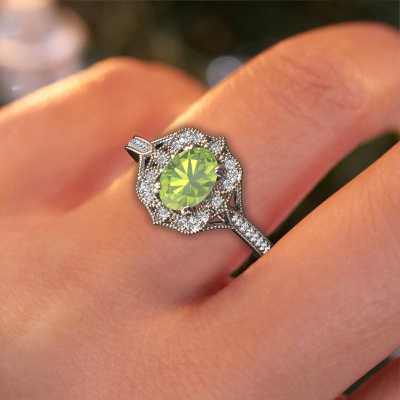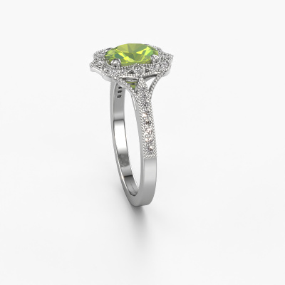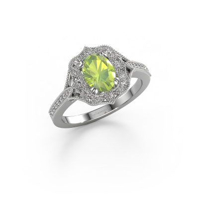 Cette bague de fiançailles porte le nom Loni. Cette bague de fiançailles forgée en or 14 Carat est sertie d’un péridot de 7,5x5,5 mm. Cette bague de fiançailles forgée en or blanc en filigrane est un chef-d’œuvre en soi. Un magnifique design de fils sophistiqués qui forment un ensemble unique. Et simultanément, un beau défi pour nos orfèvres passionnés ! Avec un grand dévouement, de la patience et une grande précision, ils forgent cette bague de fiançailles spécialement pour votre bien-aimée. Tout est fabriqué à la main, de telle sorte que chaque fil puisse être parfaitement travaillé dans les moindres détails. Un long processus de forgeage, de travail et de polissage, jusqu'à ce que le maître forgeron, gardant la bague de fiançailles à la lumière, soit satisfait du résultat... Une bague de fiançailles parfaite dont il est vraiment fier. C'est la raison pour laquelle cette bague de fiançailles en filigrane vintage est aussi une large bague de fiançailles à offrir à l'amour de votre vie ! Vous allez bientôt faire votre demande à cette personne, et cette bague de fiançailles unique n’est faite que pour cette seule personne ! Merveilleux, non ? Ce bijou est faite avec passion et amour par l'un de nos maîtres orfèvres.Puisque nous concevons et livrons nos propres bijoux, nous sommes en mesure de vous proposer une bague de fiançailles à un prix que vous ne pourrez pas trouver ailleurs. Une alliance est fabriquée sur commande, ce qui permet d'éviter les excédents de matériel et nous permet de vous proposer une superbe offre de prix. Nous comprenons qu'acheter votre bague de fiançailles en ligne soit un risque, mais nous vous assistons volontiers dans le processus de conception, en tenant compte de votre budget.Notre équipe ajoute quotidiennement de nouveaux modèles à notre collection en ligne. Nos designers et orfèvres travaillent ensemble pour créer le meilleur design. Nous nous efforçons d'offrir une collection diversifiée de bijoux. Peut-être avez-vous déjà en tête un bijou en particulier ? Un bijou que vous avez trouvé quelque part. Veuillez nous contacter pour une consultation gratuite. Nous vous ferons une offre, basée sur un rapport qualité / prix juste, qui vous déconcertera.Pour vous faciliter la tâche, vous pouvez facilement nous retourner tout bijou commandé dans les 30 jours suivant la livraison.