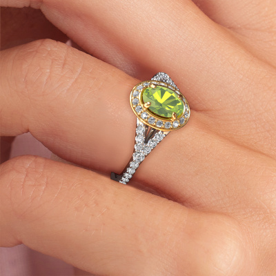 La bague de fiançailles mentionnée ci-dessus est nommée Pamela OVL. Nous appelons ce type de bague de fiançailles une bague Halo. La bague de fiançailles est forgée en or 14 Carat et comporte un péridot ovale de la de 7x5 mm et autour duquel sont sertis de petits diamants synthétiques. La largeur de cette bague de fiançailles halo forgée en or blanc luxes vient des plus petites pierres précieuses qui sont serties autour du large péridot central. C’est également ce à partir de quoi cette belle bague de fiançailles tire son nom : halo signifie halo et c’est aussi l’effet que rendent les pierres précieuses plus petites. Cependant, ces pierres précieuses plus petites doivent toutes être serties de la même manière, afin que la lumière ne soit pas seulement introduite dans le péridot et qu’un véritable halo de lumière soit créé. Et c'est ce que font nos maîtres orfèvres. Avec la plus grande précision, chaque péridot soigneusement sélectionné est placé à la main dans la bague de fiançailles. Encore et encore, la bague de fiançailles est maintenue à la lumière pour voir si l'effet spécial est toujours visible. Le résultat est une bague de fiançailles unique, où le péridot choisi devient littéralement le centre brillants. Vous pouvez imaginer que cette bague de fiançailles est vraiment une bague de fiançailles significative à offrir à votre amour de la vie ! Le jour où vous montrez qu’elle est votre centre brillants ! Qu'y a-t-il dorénavant de plus beau qu'une bague de fiançailles luxes conçue par vous-même et fabriquée à la main par nous. Vous pouvez personnaliser chaque modèle avec les différents métaux précieux et pierres précieuses. De cette façon, vous pourrez créer une bague de fiançailles unique. Cette bague peut être mise en place de plusieurs façons. Bien sûr, vous pouvez toujours nous contacter et nous serons heureux de vous aider à composer votre bague de fiançailles luxes Pamela OVL. Vous aimez le design, mais vous souhaitez tout de même quelque chose qui vous convienne plus, ou bien vous souhaitez une pierre précieuse dans les bijoux que vous ne pouvez pas choisir sur notre site, contactez-nous et nous vous aiderons.Notre équipe ajoute quotidiennement de nouveaux modèles à notre collection en ligne. Nos designers et orfèvres travaillent ensemble pour créer le meilleur design. Nous nous efforçons d'offrir une collection diversifiée de bijoux. Peut-être avez-vous déjà en tête un bijou en particulier ? Un bijou que vous avez trouvé quelque part. Veuillez nous contacter pour une consultation gratuite. Nous vous ferons une offre, basée sur un rapport qualité / prix juste, qui vous déconcertera.Pour vous faciliter la tâche, vous pouvez facilement nous retourner tout bijou commandé dans les 30 jours suivant la livraison.