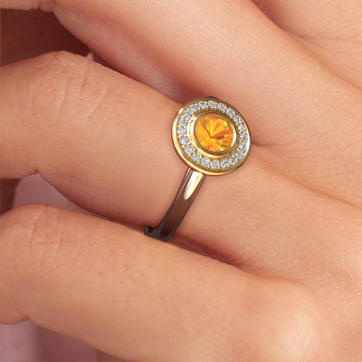 La bague de fiançailles mentionnée ci-dessus est nommée Noud 1 RND. Nous appelons ce type de bague de fiançailles une bague Halo. La bague de fiançailles est forgée en or 14 Carat et comporte un citrine ronds de la de 4.7 mm et autour duquel sont sertis de petits diamants. La largeur de cette bague de fiançailles halo forgée en or blanc traditionnelles vient des plus petites pierres précieuses qui sont serties autour du large citrine central. C’est également ce à partir de quoi cette belle bague de fiançailles tire son nom : halo signifie halo et c’est aussi l’effet que rendent les pierres précieuses plus petites. Cependant, ces pierres précieuses plus petites doivent toutes être serties de la même manière, afin que la lumière ne soit pas seulement introduite dans le citrine et qu’un véritable halo de lumière soit créé. Et c'est ce que font nos maîtres orfèvres. Avec la plus grande précision, chaque citrine soigneusement sélectionné est placé à la main dans la bague de fiançailles. Encore et encore, la bague de fiançailles est maintenue à la lumière pour voir si l'effet spécial est toujours visible. Le résultat est une bague de fiançailles unique, où le citrine choisi devient littéralement le centre brillants. Vous pouvez imaginer que cette bague de fiançailles est vraiment une bague de fiançailles significative à offrir à votre amour de la vie ! Le jour où vous montrez qu’elle est votre centre brillants ! En combinant les dernières techniques modernes, associées à une fabrication ancienne, nous sommes en mesure de fabriquer nos bagues de fiançailles dans notre propre studio. Chaque bijou est fabriqué sur commande. Ceci est avantageux car nous sommes en mesure de vous proposer un prix que vous ne trouverez nulle part ailleurs.Avez-vous déjà des bague de fiançailles spécifiques en tête ? Une bague de fiançailles que vous avez vu quelque part. N'hésitez pas à nous faire part de vos souhaits et nous transformerons votre design en des bague de fiançailles uniques. Vous êtes en mesure de suivre l'évolution de la conception de vos bague de fiançailles car nous utilisons des dessins en 3D. Cela vous donnera un aperçu réaliste de votre design. Nous vous enverrons volontiers une offre sans engagement basée sur un rapport qualité / prix juste. Elle va vous étonner.Pour vous faciliter la tâche, vous pouvez facilement nous retourner tout bijou commandé dans les 30 jours suivant la livraison.