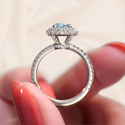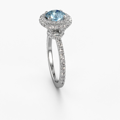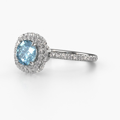 La bague de fiançailles mentionnée ci-dessus est nommée Talitha RND. Nous appelons ce type de bague de fiançailles une bague Halo. La bague de fiançailles est forgée en or 14 Carat et comporte un diamant synthétique bleu ronds de la de 6.5 mm et autour duquel sont sertis de petits diamants synthétiques. La largeur de cette bague de fiançailles halo forgée en or blanc exclusives vient des plus petites pierres précieuses qui sont serties autour du large diamant synthétique bleu central. C’est également ce à partir de quoi cette belle bague de fiançailles tire son nom : halo signifie halo et c’est aussi l’effet que rendent les pierres précieuses plus petites. Cependant, ces pierres précieuses plus petites doivent toutes être serties de la même manière, afin que la lumière ne soit pas seulement introduite dans le diamant synthétique bleu et qu’un véritable halo de lumière soit créé. Et c'est ce que font nos maîtres orfèvres. Avec la plus grande précision, chaque diamant synthétique bleu soigneusement sélectionné est placé à la main dans la bague de fiançailles. Encore et encore, la bague de fiançailles est maintenue à la lumière pour voir si l'effet spécial est toujours visible. Le résultat est une bague de fiançailles unique, où le diamant synthétique bleu choisi devient littéralement le centre brillants. Vous pouvez imaginer que cette bague de fiançailles est vraiment une bague de fiançailles significative à offrir à votre amour de la vie ! Le jour où vous montrez qu’elle est votre centre brillants ! Vous avez peut-être remarqué que nos prix sont en moyenne inférieurs de 30% à ceux d'un autre bijoutier. Et ce alors que la qualité de nos bijoux est même plus élevée dans la plupart des cas ! En effet, nos orfèvres fabriquent votre bague de fiançailles directement dans notre propre atelier. Cela signifie que nous n'avons pas à inclure des frais de stocks coûteux et que nous pouvons travailler n'importe quel détail directement sur votre bague de fiançailles.Notre équipe ajoute quotidiennement de nouveaux modèles à notre collection en ligne. Nos designers et orfèvres travaillent ensemble pour créer le meilleur design. Nous nous efforçons d'offrir une collection diversifiée de bijoux. Peut-être avez-vous déjà en tête un bijou en particulier ? Un bijou que vous avez trouvé quelque part. Veuillez nous contacter pour une consultation gratuite. Nous vous ferons une offre, basée sur un rapport qualité / prix juste, qui vous déconcertera.Pour vous faciliter la tâche, vous pouvez facilement nous retourner tout bijou commandé dans les 30 jours suivant la livraison.