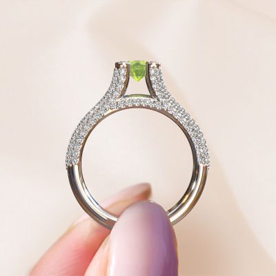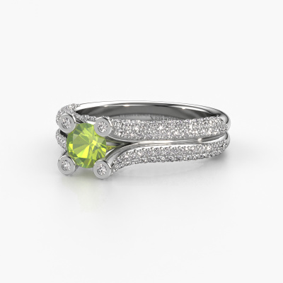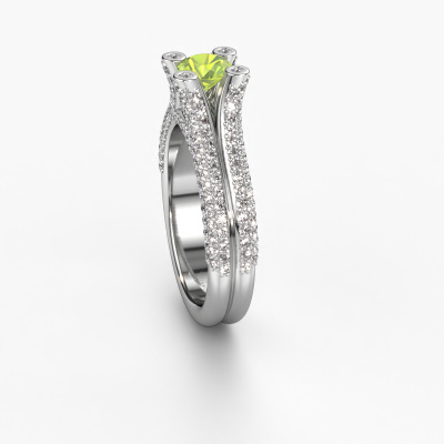 Le nom de cette bague de fiançailles est Stefanie 2. Elle est forgée en or 14 Carat et est sertie d'un péridot de 5 mm. Votre petit-amie aime-t-elle les accessoires au look unique ? Ou bien voudriez-vous lui montrer qu'elle ne mérite que le meilleur bijou ? Dans cette bague de fiançailles forgée en or blanc, le savoir-faire, l'amour et la passion se mêlent aux techniques d’orfèvres les plus récentes. Il faut un œil expérimenté, de la patience et une main habile pour concevoir parfaitement cette bague de fiançailles dans les moindres détails. Et c'est exactement le travail que nos orfèvres recherchent ! Le sertissage de ces péridots soigneusement sélectionnés donne à la bague de fiançailles bandes séparées forgée en or blanc une allure supplémentaire. Le style peut être adapté au goût de votre petite amie grâce à un large choix de métaux précieux et de pierres précieuses. De cette manière, vous pouvez créer une bague de fiançailles unique pour la femmes la plus unique de votre vie ! Ce bijou est fabriquées spécialement pour vous par nos maîtres orfèvres dans notre propre atelier.Saviez-vous que nous offrons la garantie du meilleur prix pour votre bague de fiançailles? Cela est possible car tous nos bijoux sont fabriqués à la main dans notre propre atelier. Nous n'avons pas de frais de stocks qui sont coûteux, et nous fabriquons votre bague uniquement une fois que vous l'avez commandée. Grâce au fait que nous ayons toute la production du bijou en main, nous pouvons vous informer sur toutes les caractéristiques de cette bague de fiançailles. C’est précisément parce que l’achat d’une bague en ligne est une expérience excitante que nous comprenons qu’il est plus confortable pour vous de connaître toutes les caractéristiques de votre bague. Notre équipe ajoute quotidiennement de nouveaux modèles à notre collection en ligne. Nos designers et orfèvres travaillent ensemble pour créer le meilleur design. Nous nous efforçons d'offrir une collection diversifiée de bijoux. Peut-être avez-vous déjà en tête un bijou en particulier ? Un bijou que vous avez trouvé quelque part. Veuillez nous contacter pour une consultation gratuite. Nous vous ferons une offre, basée sur un rapport qualité / prix juste, qui vous déconcertera.Pour vous faciliter la tâche, vous pouvez facilement nous retourner tout bijou commandé dans les 30 jours suivant la livraison.