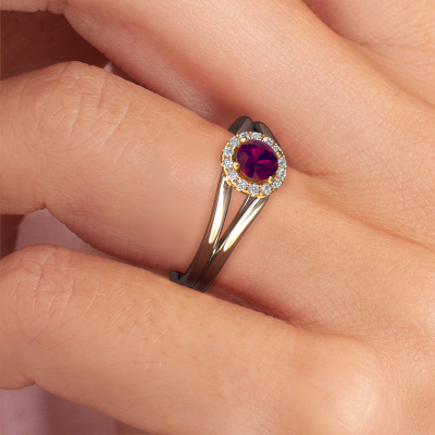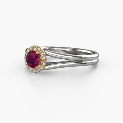 La bague de fiançailles mentionnée ci-dessus est nommée Verla rnd 1. Nous appelons ce type de bague de fiançailles une bague Halo. La bague de fiançailles est forgée en or 14 Carat et comporte un rhodolite ronds de la de 4.7 mm et autour duquel sont sertis de petits diamants. La largeur de cette bague de fiançailles halo forgée en or blanc classiques vient des plus petites pierres précieuses qui sont serties autour du large rhodolite central. C’est également ce à partir de quoi cette belle bague de fiançailles tire son nom : halo signifie halo et c’est aussi l’effet que rendent les pierres précieuses plus petites. Cependant, ces pierres précieuses plus petites doivent toutes être serties de la même manière, afin que la lumière ne soit pas seulement introduite dans le rhodolite et qu’un véritable halo de lumière soit créé. Et c'est ce que font nos maîtres orfèvres. Avec la plus grande précision, chaque rhodolite soigneusement sélectionné est placé à la main dans la bague de fiançailles. Encore et encore, la bague de fiançailles est maintenue à la lumière pour voir si l'effet spécial est toujours visible. Le résultat est une bague de fiançailles unique, où le rhodolite choisi devient littéralement le centre brillants. Vous pouvez imaginer que cette bague de fiançailles est vraiment une bague de fiançailles significative à offrir à votre amour de la vie ! Le jour où vous montrez qu’elle est votre centre brillants ! En combinant les dernières techniques modernes, associées à une fabrication ancienne, nous sommes en mesure de fabriquer nos bagues de fiançailles dans notre propre studio. Chaque bijou est fabriqué sur commande. Ceci est avantageux car nous sommes en mesure de vous proposer un prix que vous ne trouverez nulle part ailleurs.Notre équipe ajoute quotidiennement de nouveaux modèles à notre collection en ligne. Nos designers et orfèvres travaillent ensemble pour créer le meilleur design. Nous nous efforçons d'offrir une collection diversifiée de bijoux. Peut-être avez-vous déjà en tête un bijou en particulier ? Un bijou que vous avez trouvé quelque part. Veuillez nous contacter pour une consultation gratuite. Nous vous ferons une offre, basée sur un rapport qualité / prix juste, qui vous déconcertera.Pour vous faciliter la tâche, vous pouvez facilement nous retourner tout bijou commandé dans les 30 jours suivant la livraison.