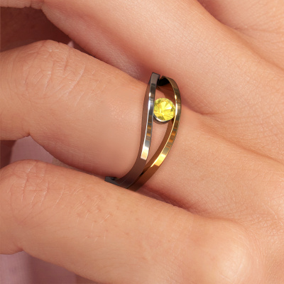 Cette bague de fiançailles porte le nom de Sigrid 1. La bague de fiançailles est en or 14 carats et avec un saphir jaune de 3.7 mm. Cette bague de fiançailles en or blanc design est vraiment un exemple d'une belle pièce d'artisanat. Notre orfèvre utilise des techniques spéciales pour la fabrication de cette bague de fiançailles à tension, dans laquelle le saphir jaune est calé par l'anneau de la bague forgée en or blanc. L’effet obtenu ci-présent est que la lumière a un jeu libre sur la pierre précieuse, ce qui crée un bel éclat et une belle allure large. Le résultat est une belle bague au look design, fabriquée à la main avec passion par notre orfèvre, spécialement pour l'amour de votre vie ! Ce bijou est fabriquées avec passion et amour par l'un de nos maîtres orfèvres. Qu'y a-t-il dorénavant de plus beau qu'une bague de fiançailles design conçue par vous-même et fabriquée à la main par nous. Vous pouvez personnaliser chaque modèle avec les différents métaux précieux et pierres précieuses. De cette façon, vous pourrez créer une bague de fiançailles unique. Cette bague peut être mise en place de plusieurs façons. Bien sûr, vous pouvez toujours nous contacter et nous serons heureux de vous aider à composer votre bague de fiançailles design Sigrid 1. Vous aimez le design, mais vous souhaitez tout de même quelque chose qui vous convienne plus, ou bien vous souhaitez une pierre précieuse dans les bijoux que vous ne pouvez pas choisir sur notre site, contactez-nous et nous vous aiderons. Notre équipe ajoute quotidiennement de nouveaux modèles à notre collection en ligne. Nos designers et orfèvres travaillent ensemble pour créer le meilleur design. Nous nous efforçons d'offrir une collection diversifiée de bijoux. Peut-être avez-vous déjà en tête un bijou en particulier ? Un bijou que vous avez trouvé quelque part. Veuillez nous contacter pour une consultation gratuite. Nous vous ferons une offre, basée sur un rapport qualité / prix juste, qui vous déconcertera. Pour vous faciliter la tâche, vous pouvez facilement nous retourner tout bijou commandé dans les 30 jours suivant la livraison.