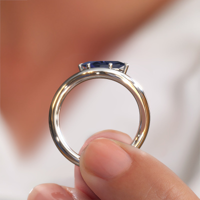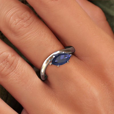 Nous appelons cette bague de fiançailles Chloe MRQ. Cette bague forgée en or 14 Carat est sertie d’un saphir. Vous recherchez une bague de fiançailles forgée en or blanc unique et au look modernes ? Voici donc une belle bague magnifique que