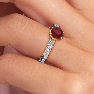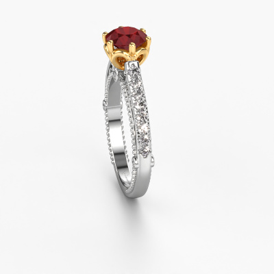 Cette bague de fiançailles porte le nom Venita. Cette bague de fiançailles forgée en or 14 Carat est sertie d’un rubis. Cette bague de fiançailles unique est une large bague vintage forgée en or blanc qui laissera certainement briller l’amour de votre vie ! Et c'est exactement ce que nous avons comme objectif. De magnifiques rubis ont été sertis sur cette bague de fiançailles vintage. Vous pouvez, bien entendu, utiliser chaque pierre précieuse que nous proposons sur notre site. La pierre précieuse sera sélectionnée avec soin, car nous pensons que seule la plus belle des pierres précieuses peut briller sur votre bague de fiançailles, qu’en dites-vous ? Notre orfèvre fabrique votre bague de fiançailles dans notre propre atelier et place le rubis dans son anneau avec une précision extrême. Puis, elle est travaillée et polie jusqu'à ce que le résultat soit visible : la bague de fiançailles parfaite pour l'amour de votre vie ! Ce bijou est fabriquées spécialement pour vous par nos maîtres orfèvres dans notre propre atelier.Saviez-vous que nous offrons la garantie du meilleur prix pour votre bague de fiançailles? Cela est possible car tous nos bijoux sont fabriqués à la main dans notre propre atelier. Nous n'avons pas de frais de stocks qui sont coûteux, et nous fabriquons votre bague uniquement une fois que vous l'avez commandée. Grâce au fait que nous ayons toute la production du bijou en main, nous pouvons vous informer sur toutes les caractéristiques de cette bague de fiançailles. C’est précisément parce que l’achat d’une bague en ligne est une expérience excitante que nous comprenons qu’il est plus confortable pour vous de connaître toutes les caractéristiques de votre bague.Notre équipe ajoute quotidiennement de nouveaux modèles à notre collection en ligne. Nos designers et orfèvres travaillent ensemble pour créer le meilleur design. Nous nous efforçons d'offrir une collection diversifiée de bijoux. Peut-être avez-vous déjà en tête un bijou en particulier ? Un bijou que vous avez trouvé quelque part. Veuillez nous contacter pour une consultation gratuite. Nous vous ferons une offre, basée sur un rapport qualité / prix juste, qui vous déconcertera.Pour vous faciliter la tâche, vous pouvez facilement nous retourner tout bijou commandé dans les 30 jours suivant la livraison.