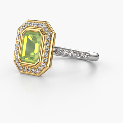 Le nom de cette bague de fiançailles est Noud 2 EME. Elle est forgée en or 14 Carat et est sertie d'un péridot de 8x6 mm. Votre petit-amie aime-t-elle les accessoires au look unique ? Ou bien voudriez-vous lui montrer qu'elle ne mérite que le meilleur bijou ? Dans cette bague de fiançailles forgée en or blanc, le savoir-faire, l'amour et la passion se mêlent aux techniques d’orfèvres les plus récentes. Il faut un œil expérimenté, de la patience et une main habile pour concevoir parfaitement cette bague de fiançailles dans les moindres détails. Et c'est exactement le travail que nos orfèvres recherchent ! Le sertissage de ces péridots soigneusement sélectionnés donne à la bague de fiançailles pavé forgée en or blanc une allure supplémentaire. Le style peut être adapté au goût de votre petite amie grâce à un large choix de métaux précieux et de pierres précieuses. De cette manière, vous pouvez créer une bague de fiançailles unique pour la femmes la plus unique de votre vie ! Ce bijou est faite pour briller sur votre doigt, chaque bijou est fabriqué à la main par nos orfèvres.Nos orfèvres ne fabriqueront votre bague de fiançailles qu'une fois que vous l'aurez commandée. Nous ne faisons pas de stock. L'avantage de cela est que nous n'avons pas à inclure les frais de stockage dans nos prix, et nous pouvons donc vous offrir des bijoux à un prix très bas. Avez-vous déjà des bague de fiançailles spécifiques en tête ? Une bague de fiançailles que vous avez vu quelque part. N'hésitez pas à nous faire part de vos souhaits et nous transformerons votre design en des bague de fiançailles uniques. Vous êtes en mesure de suivre l'évolution de la conception de vos bague de fiançailles car nous utilisons des dessins en 3D. Cela vous donnera un aperçu réaliste de votre design. Nous vous enverrons volontiers une offre sans engagement basée sur un rapport qualité / prix juste. Elle va vous étonner.Pour vous faciliter la tâche, vous pouvez facilement nous retourner tout bijou commandé dans les 30 jours suivant la livraison.