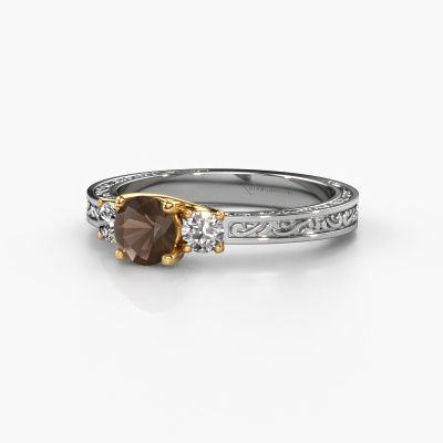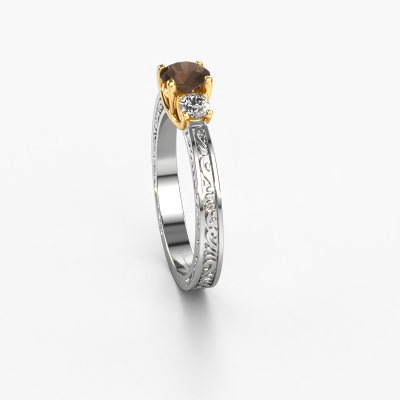 Cette bague de fiançailles porte le nom Betty 1. Cette bague de fiançailles forgée en or 14 Carat est sertie d’un quartz fumé. Cette bague de fiançailles unique est une large bague vintage forgée en or blanc qui laissera certainement briller l’amour de votre vie ! Et c'est exactement ce que nous avons comme objectif. De magnifiques quartz fumé ont été sertis sur cette bague de fiançailles Celtiques. Vous pouvez, bien entendu, utiliser chaque pierre précieuse que nous proposons sur notre site. La pierre précieuse sera sélectionnée avec soin, car nous pensons que seule la plus belle des pierres précieuses peut briller sur votre bague de fiançailles, qu’en dites-vous ? Notre orfèvre fabrique votre bague de fiançailles dans notre propre atelier et place le quartz fumé dans son anneau avec une précision extrême. Puis, elle est travaillée et polie jusqu'à ce que le résultat soit visible : la bague de fiançailles parfaite pour l'amour de votre vie ! Ce bijou est faite pour briller sur votre doigt, chaque bijou est fabriqué à la main par nos orfèvres.Vous avez peut-être remarqué que nos prix sont en moyenne inférieurs de 30% à ceux d'un autre bijoutier. Et ce alors que la qualité de nos bijoux est même plus élevée dans la plupart des cas ! En effet, nos orfèvres fabriquent votre bague de fiançailles directement dans notre propre atelier. Cela signifie que nous n'avons pas à inclure des frais de stocks coûteux et que nous pouvons travailler n'importe quel détail directement sur votre bague de fiançailles.Notre équipe ajoute quotidiennement de nouveaux modèles à notre collection en ligne. Nos designers et orfèvres travaillent ensemble pour créer le meilleur design. Nous nous efforçons d'offrir une collection diversifiée de bijoux. Peut-être avez-vous déjà en tête un bijou en particulier ? Un bijou que vous avez trouvé quelque part. Veuillez nous contacter pour une consultation gratuite. Nous vous ferons une offre, basée sur un rapport qualité / prix juste, qui vous déconcertera.Pour vous faciliter la tâche, vous pouvez facilement nous retourner tout bijou commandé dans les 30 jours suivant la livraison.