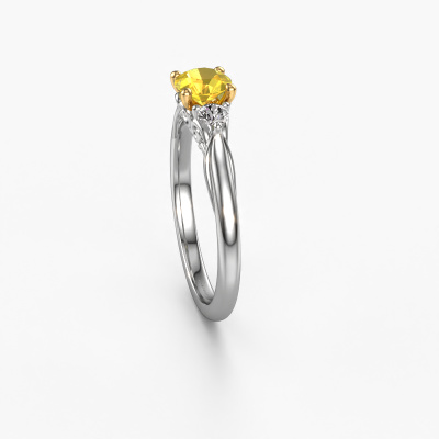 Cette bague de fiançailles porte le nom Laurian RND. Cette bague de fiançailles forgée en or 14 Carat est sertie d’un saphir jaune. Cette bague de fiançailles unique est une large bague vintage forgée en or blanc qui laissera certainement briller l’amour de votre vie ! Et c'est exactement ce que nous avons comme objectif. De magnifiques saphirs jaunes ont été sertis sur cette bague de fiançailles classiques. Vous pouvez, bien entendu, utiliser chaque pierre précieuse que nous proposons sur notre site. La pierre précieuse sera sélectionnée avec soin, car nous pensons que seule la plus belle des pierres précieuses peut briller sur votre bague de fiançailles, qu’en dites-vous ? Notre orfèvre fabrique votre bague de fiançailles dans notre propre atelier et place le saphir jaune dans son anneau avec une précision extrême. Puis, elle est travaillée et polie jusqu'à ce que le résultat soit visible : la bague de fiançailles parfaite pour l'amour de votre vie ! Ce bijou est fabriquée par une équipe d'orfèvres et de designers motivés. Cela permettra à cette pièce unique d'attirer tous les regards.Nos orfèvres ne fabriqueront votre bague de fiançailles qu'une fois que vous l'aurez commandée. Nous ne faisons pas de stock. L'avantage de cela est que nous n'avons pas à inclure les frais de stockage dans nos prix, et nous pouvons donc vous offrir des bijoux à un prix très bas.Notre équipe ajoute quotidiennement de nouveaux modèles à notre collection en ligne. Nos designers et orfèvres travaillent ensemble pour créer le meilleur design. Nous nous efforçons d'offrir une collection diversifiée de bijoux. Peut-être avez-vous déjà en tête un bijou en particulier ? Un bijou que vous avez trouvé quelque part. Veuillez nous contacter pour une consultation gratuite. Nous vous ferons une offre, basée sur un rapport qualité / prix juste, qui vous déconcertera.Pour vous faciliter la tâche, vous pouvez facilement nous retourner tout bijou commandé dans les 30 jours suivant la livraison.