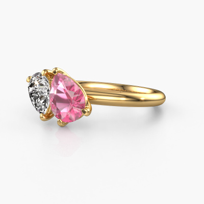 Nous appelons cette bague de fiançailles Toi et Moi PER-PER. Cette bague forgée en or 14 Carat est sertie d’un saphir rose. Vous recherchez une bague de fiançailles forgée en or jaune unique et au look à la mode ? Voici donc une belle bague magnifique que vous pouvez entièrement ajuster à votre goût. Un saphir rose magnifique est utilisé dans cette bague de fiançailles à la mode. Celui-ci est sélectionné avec soin, car seule les plus belles des pierres précieuses peuvent briller sur votre bague de fiançailles à la mode. Notre orfèvre fabrique votre bague de fiançailles dans notre propre atelier et place le saphir rose dans la bague avec une précision extrême. Donc, la bague est travaillée et polie jusqu'à ce que le résultat désiré soit visible : la bague de fiançailles parfaite pour l'amour de votre vie ! Saviez-vous que nous offrons la garantie du meilleur prix pour votre bague de fiançailles? Cela est possible car tous nos bijoux sont fabriqués à la main dans notre propre atelier. Nous n'avons pas de frais de stocks qui sont coûteux, et nous fabriquons votre bague uniquement une fois que vous l'avez commandée. Grâce au fait que nous ayons toute la production du bijou en main, nous pouvons vous informer sur toutes les caractéristiques de cette bague de fiançailles. C’est précisément parce que l’achat d’une bague en ligne est une expérience excitante que nous comprenons qu’il est plus confortable pour vous de connaître toutes les caractéristiques de votre bague.Notre équipe de designers talentueux et passionnés ajoute chaque jour de nouveaux modèles bague de fiançailles à notre collection en ligne. Notre objectif est de pouvoir vous offrir une grande variété de bijoux. N'hésitez pas à demander un devis si vous avez des souhaits spécifiques pour votre bague de fiançailles. Nous garantissons de vous faire une offre que vous ne pourrez pas refuser.Pour vous faciliter la tâche, vous pouvez facilement nous retourner tout bijou commandé dans les 30 jours suivant la livraison.