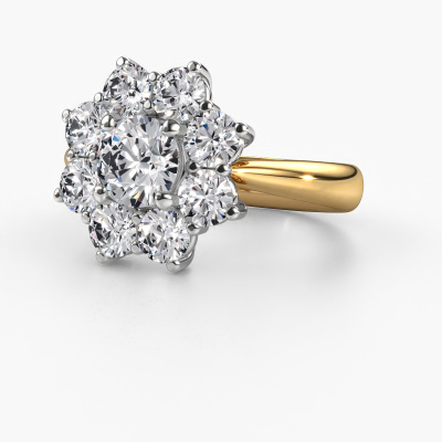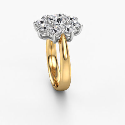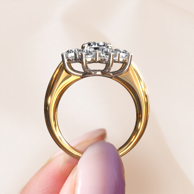 La bague de fiançailles présentée ci-dessus a été nommée Carolyn 1. Nous appelons ce type de bague de fiançailles une bague flower, dans laquelle de petites pierres précieuses sont serties autour de la pierre centrale dans un sertissage ouvert. Cette bague de fiançailles forgée en or 14 Carat a un diamant ronds de 1.00 crt en guise de pierre centrale qui est aussi entourée de petits diamants. La particularité de cette bague de fiançailles traditionnelles forgée en or jaune est sa forme : les petites pierres précieuses et le diamant forment une belle fleur qui semble se fondre en une large pierre précieuse étincelante. Cette bague de fiançailles est aussi appelée la bague de fiançailles fleur ou rosette. Nos maîtres orfèvres veillent à ce que les plus petits diamants soient tous sertis de la même manière, afin que la lumière passant au travers du diamant ne soit pas interrompue et qu'une belle unité soit créée. Avec un œil expérimenté et une main habile, chaque diamant soigneusement sélectionné est serti dans la bague de fiançailles. Toujours et encore, la bague de fiançailles est examinée sous la lumière pour voir si l'effet spécial désiré est encore visible. Le résultat est une bague de fiançailles unique, où le diamant choisi devient littéralement le centre brillants. Quelle bague de fiançailles belle et significative à offrir au centre qui brille dans votre vie ! Qu'y a-t-il dorénavant de plus beau qu'une bague de fiançailles traditionnelles conçue par vous-même et fabriquée à la main par nous. Vous pouvez personnaliser chaque modèle avec les différents métaux précieux et pierres précieuses. De cette façon, vous pourrez créer une bague de fiançailles unique. Cette bague peut être mise en place de plusieurs façons. Bien sûr, vous pouvez toujours nous contacter et nous serons heureux de vous aider à composer votre bague de fiançailles traditionnelles Carolyn 1. Vous aimez le design, mais vous souhaitez tout de même quelque chose qui vous convienne plus, ou bien vous souhaitez une pierre précieuse dans les bijoux que vous ne pouvez pas choisir sur notre site, contactez-nous et nous vous aiderons.Avez-vous déjà des bague de fiançailles spécifiques en tête ? Une bague de fiançailles que vous avez vu quelque part. N'hésitez pas à nous faire part de vos souhaits et nous transformerons votre design en des bague de fiançailles uniques. Vous êtes en mesure de suivre l'évolution de la conception de vos bague de fiançailles car nous utilisons des dessins en 3D. Cela vous donnera un aperçu réaliste de votre design. Nous vous enverrons volontiers une offre sans engagement basée sur un rapport qualité / prix juste. Elle va vous étonner.Pour vous faciliter la tâche, vous pouvez facilement nous retourner tout bijou commandé dans les 30 jours suivant la livraison.