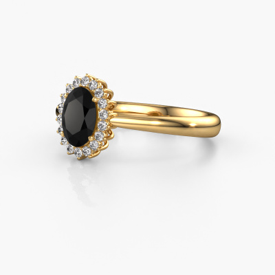 La bague de fiançailles présentée ci-dessus a été nommée Tilly ovl 1. Nous appelons ce type de bague de fiançailles une bague entourage, dans laquelle de petites pierres précieuses sont serties autour de la pierre centrale dans un sertissage ouvert. Cette bague de fiançailles forgée en or 14 Carat a un diamant noir ovale de 1.05 crt en guise de pierre centrale qui est aussi entourée de petits diamants synthétiques. La particularité de cette bague de fiançailles classiques forgée en or jaune est sa forme : les petites pierres précieuses et le diamant noir forment une belle fleur qui semble se fondre en une large pierre précieuse étincelante. Cette bague de fiançailles est aussi appelée la bague de fiançailles fleur ou rosette. Nos maîtres orfèvres veillent à ce que les plus petits diamants synthétiques soient tous sertis de la même manière, afin que la lumière passant au travers du diamant noir ne soit pas interrompue et qu'une belle unité soit créée. Avec un œil expérimenté et une main habile, chaque diamant noir soigneusement sélectionné est serti dans la bague de fiançailles. Toujours et encore, la bague de fiançailles est examinée sous la lumière pour voir si l'effet spécial désiré est encore visible. Le résultat est une bague de fiançailles unique, où le diamant noir choisi devient littéralement le centre brillants. Quelle bague de fiançailles belle et significative à offrir au centre qui brille dans votre vie ! En combinant les dernières techniques modernes, associées à une fabrication ancienne, nous sommes en mesure de fabriquer nos bagues de fiançailles dans notre propre studio. Chaque bijou est fabriqué sur commande. Ceci est avantageux car nous sommes en mesure de vous proposer un prix que vous ne trouverez nulle part ailleurs.Avez-vous déjà des bague de fiançailles spécifiques en tête ? Une bague de fiançailles que vous avez vu quelque part. N'hésitez pas à nous faire part de vos souhaits et nous transformerons votre design en des bague de fiançailles uniques. Vous êtes en mesure de suivre l'évolution de la conception de vos bague de fiançailles car nous utilisons des dessins en 3D. Cela vous donnera un aperçu réaliste de votre design. Nous vous enverrons volontiers une offre sans engagement basée sur un rapport qualité / prix juste. Elle va vous étonner.Pour vous faciliter la tâche, vous pouvez facilement nous retourner tout bijou commandé dans les 30 jours suivant la livraison.
