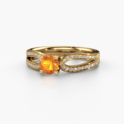 La bague de fiançailles mentionnée ci-dessus a été nommée Antonia rnd 2. Ce type de bague de fiançailles est appelé une bague de fiançailles solitaire pavé car elle ne comporte qu’une seule pierre centrale et les tiges de la bague de fiançailles sont également pleins. La bague de fiançailles est faite dans une combinaison d'or 14 Carat et d’or jaune et a un citrine ronds d’une de 5 mm, et des diamants sont sertis sur les épaules de l’anneau. Chaque bijou est spécialement conçues pour vous, avec une attention particulière portée aux détails et au design. Cette bague de fiançailles solitaire pavé forgée en or jaune traditionnelles a un beau citrines ronds comme pierre centrale, avec plus de citrines sertis dans la bague pour accentuer encore plus la présence de la pierre centrale. Le sertissage à griffes autour du citrine étant ouvert, le citrine capte la lumière de tous les côtés et brille de manière optimale. Ci-dessus, vous pouvez voir comment notre orfèvre travaille la bague de fiançailles avec une extrême précision dans les moindres détails, de telle sorte que le citrine élevé puisse attirer tous les regards. Quelle belle bague de fiançailles à offrir lors de votre demande en mariage à l'amour de votre vie, à votre centre rayonnant ! Nos orfèvres ne fabriqueront votre bague de fiançailles qu'une fois que vous l'aurez commandée. Nous ne faisons pas de stock. L'avantage de cela est que nous n'avons pas à inclure les frais de stockage dans nos prix, et nous pouvons donc vous offrir des bijoux à un prix très bas.Avez-vous déjà des bague de fiançailles spécifiques en tête ? Une bague de fiançailles que vous avez vu quelque part. N'hésitez pas à nous faire part de vos souhaits et nous transformerons votre design en des bague de fiançailles uniques. Vous êtes en mesure de suivre l'évolution de la conception de vos bague de fiançailles car nous utilisons des dessins en 3D. Cela vous donnera un aperçu réaliste de votre design. Nous vous enverrons volontiers une offre sans engagement basée sur un rapport qualité / prix juste. Elle va vous étonner.Pour vous faciliter la tâche, vous pouvez facilement nous retourner tout bijou commandé dans les 30 jours suivant la livraison.