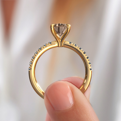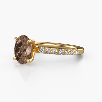 La bague de fiançailles mentionnée ci-dessus a été nommée Crystal OVL 2. Ce type de bague de fiançailles est appelé une bague de fiançailles solitaire pavé car elle ne comporte qu’une seule pierre centrale et les tiges de la bague de fiançailles sont également pleins. La bague de fiançailles est faite dans une combinaison d'or 14 Carat et d’or jaune et a un diamant brun ovale d’une de 1.80 crt, et des diamants synthétiques sont sertis sur les épaules de l’anneau. Chaque bijou est fabriquée spécialement pour vous par nos maîtres orfèvres dans notre propre atelier. Cette bague de fiançailles solitaire pavé forgée en or jaune exclusives a un beau diamants bruns ovale comme pierre centrale, avec plus de diamants bruns sertis dans la bague pour accentuer encore plus la présence de la pierre centrale. Le sertissage à griffes autour du diamant brun étant ouvert, le diamant brun capte la lumière de tous les côtés et brille de manière optimale. Ci-dessus, vous pouvez voir comment notre orfèvre travaille la bague de fiançailles avec une extrême précision dans les moindres détails, de telle sorte que le diamant brun élevé puisse attirer tous les regards. Quelle belle bague de fiançailles à offrir lors de votre demande en mariage à l'amour de votre vie, à votre centre rayonnant ! En combinant les dernières techniques modernes, associées à une fabrication ancienne, nous sommes en mesure de fabriquer nos bagues de fiançailles dans notre propre studio. Chaque bijou est fabriqué sur commande. Ceci est avantageux car nous sommes en mesure de vous proposer un prix que vous ne trouverez nulle part ailleurs.Notre équipe ajoute quotidiennement de nouveaux modèles à notre collection en ligne. Nos designers et orfèvres travaillent ensemble pour créer le meilleur design. Nous nous efforçons d'offrir une collection diversifiée de bijoux. Peut-être avez-vous déjà en tête un bijou en particulier ? Un bijou que vous avez trouvé quelque part. Veuillez nous contacter pour une consultation gratuite. Nous vous ferons une offre, basée sur un rapport qualité / prix juste, qui vous déconcertera.Pour vous faciliter la tâche, vous pouvez facilement nous retourner tout bijou commandé dans les 30 jours suivant la livraison.