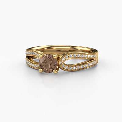 La bague de fiançailles mentionnée ci-dessus a été nommée Antonia rnd 2. Ce type de bague de fiançailles est appelé une bague de fiançailles solitaire pavé car elle ne comporte qu’une seule pierre centrale et les tiges de la bague de fiançailles sont également pleins. La bague de fiançailles est faite dans une combinaison d'or 14 Carat et d’or jaune et a un diamant brun ronds d’une de 0.50 crt, et des diamants sont sertis sur les épaules de l’anneau. Chaque bijou est spécialement conçues pour vous, avec une attention particulière portée aux détails et au design. Cette bague de fiançailles solitaire pavé forgée en or jaune traditionnelles a un beau diamants bruns ronds comme pierre centrale, avec plus de diamants bruns sertis dans la bague pour accentuer encore plus la présence de la pierre centrale. Le sertissage à griffes autour du diamant brun étant ouvert, le diamant brun capte la lumière de tous les côtés et brille de manière optimale. Ci-dessus, vous pouvez voir comment notre orfèvre travaille la bague de fiançailles avec une extrême précision dans les moindres détails, de telle sorte que le diamant brun élevé puisse attirer tous les regards. Quelle belle bague de fiançailles à offrir lors de votre demande en mariage à l'amour de votre vie, à votre centre rayonnant ! Nos orfèvres ne fabriqueront votre bague de fiançailles qu'une fois que vous l'aurez commandée. Nous ne faisons pas de stock. L'avantage de cela est que nous n'avons pas à inclure les frais de stockage dans nos prix, et nous pouvons donc vous offrir des bijoux à un prix très bas.Avez-vous déjà des bague de fiançailles spécifiques en tête ? Une bague de fiançailles que vous avez vu quelque part. N'hésitez pas à nous faire part de vos souhaits et nous transformerons votre design en des bague de fiançailles uniques. Vous êtes en mesure de suivre l'évolution de la conception de vos bague de fiançailles car nous utilisons des dessins en 3D. Cela vous donnera un aperçu réaliste de votre design. Nous vous enverrons volontiers une offre sans engagement basée sur un rapport qualité / prix juste. Elle va vous étonner.Pour vous faciliter la tâche, vous pouvez facilement nous retourner tout bijou commandé dans les 30 jours suivant la livraison.